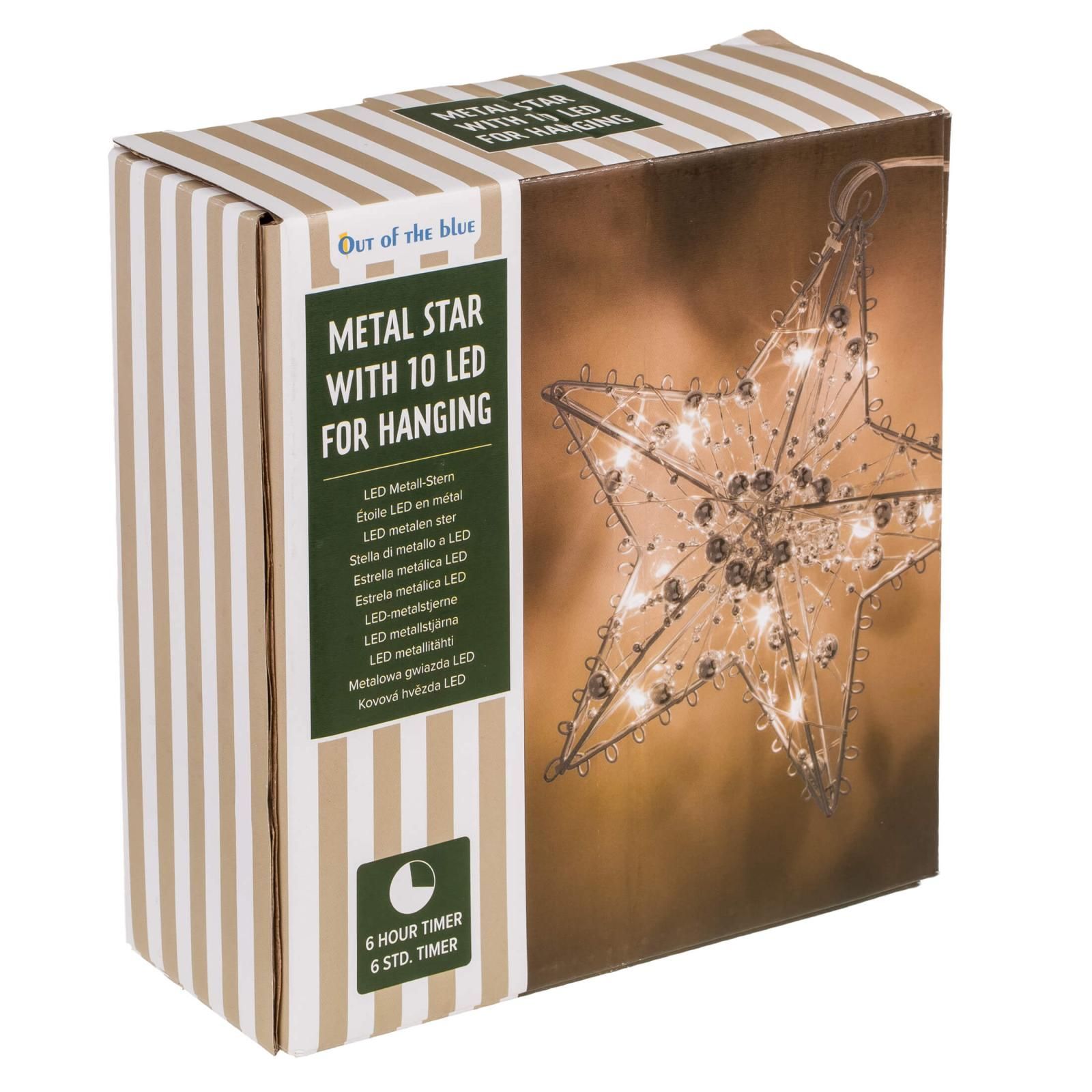 Out of the Blue LED Metall Stern zum Aufhängen 10 LEDs Batteriebetrieb mit 6 Std Timer Weihnacht