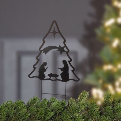 • Gilde Gartenstecker, Tannenbaum, "Krippe", Krippenmotiv, Metall, dunkelbraun, VE
