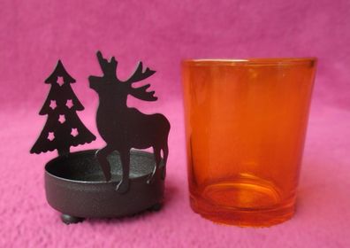 • Teelichthalter Tannenbaum Elch Kerzenhalter Metall Windlicht Weihnachts Kerze