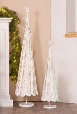 • Gilde Dekoobjekt, Tannenbaum, "Faso", Baummotiv, Sternmotiv, Metall, weiß, VE 2,
