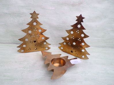 • 3er Set golden Metall Teelichter Tannenbaum Weihnachten