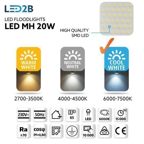 LED MH Außen Strahler Flutlicht 1600Lm 20W 230V Kaltweiß Scheinwerfer, Wasserdicht