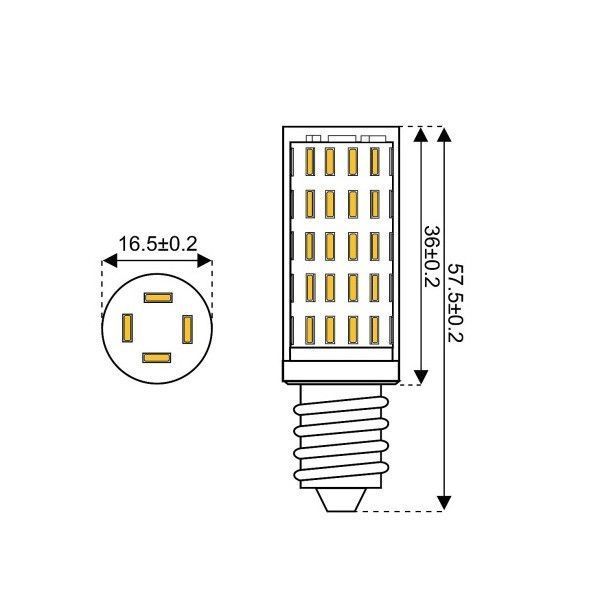LED Tubular E14, 3,2 Watt, warm-weiß LED54TU14L, kleine Bauform, DC kompatibel 80-269V DC (Lichtstromminderung bei < 140V DC)**, professionelle Ausführung, für den 24 Stunden Dauerbetrieb geeignet.