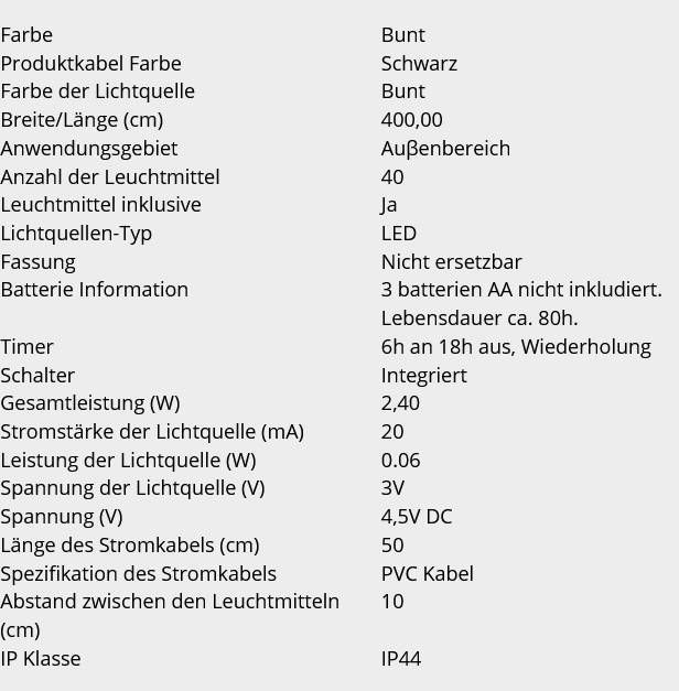 Star Trading LED Party-Lichterkette 40er rot-weiss-blau-grün 6/18h Timer Batterie 472-15