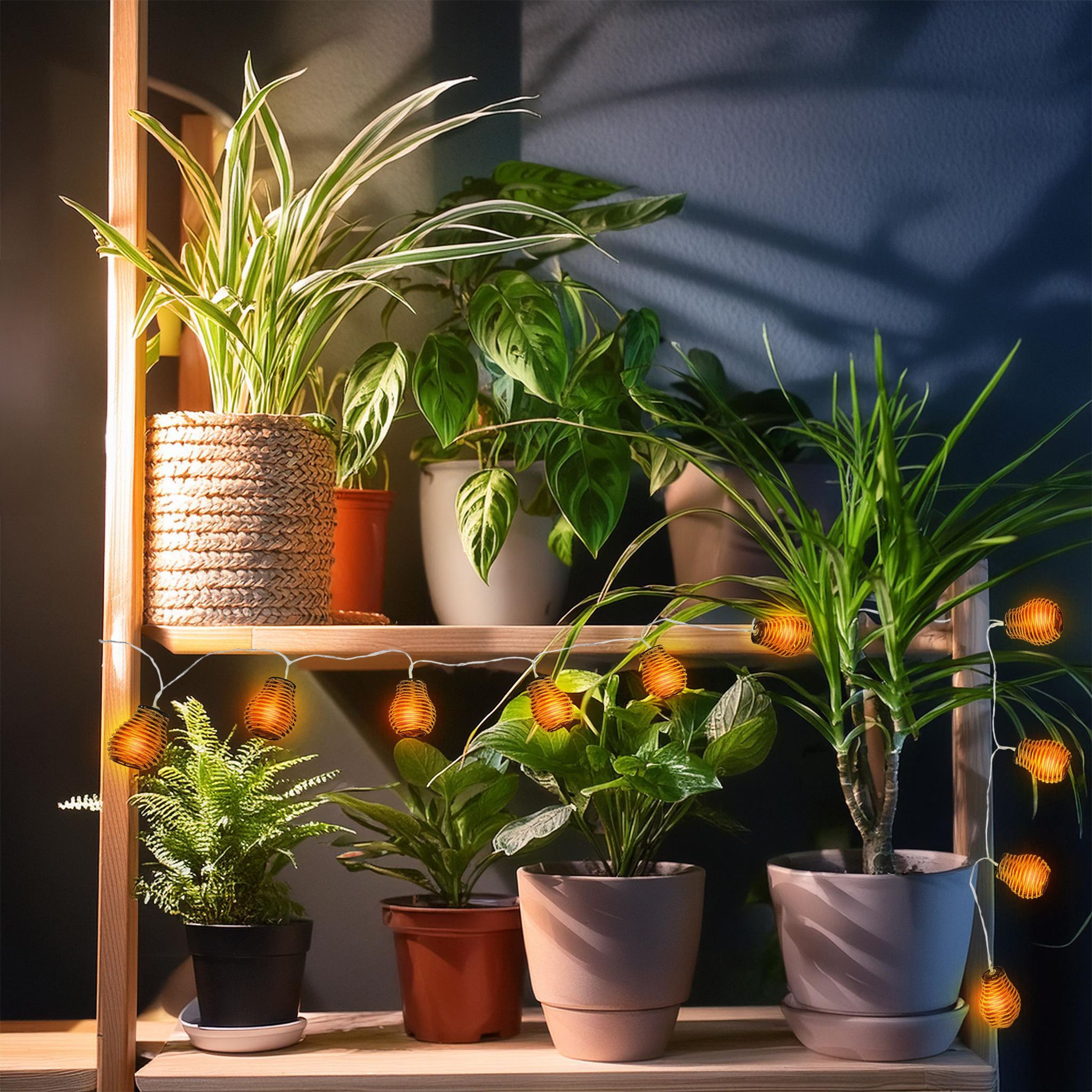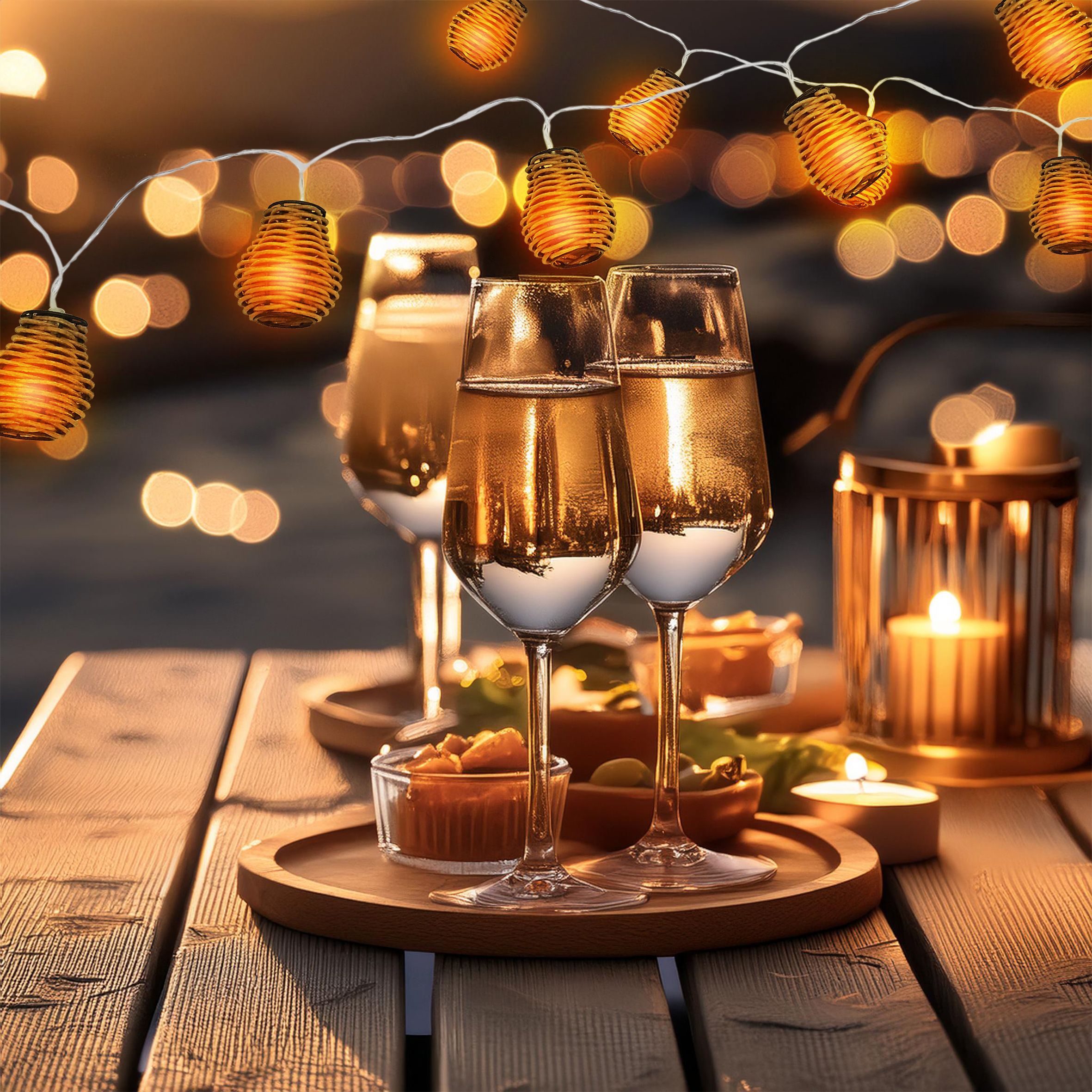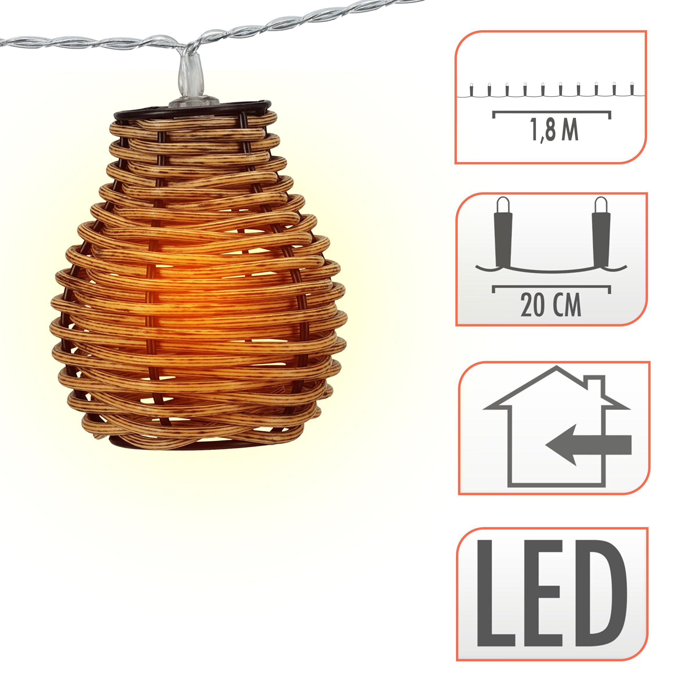 LED Rattan Lichterkette warm weiß - 10 LED / 180 cm - Deko Girlande Batterie