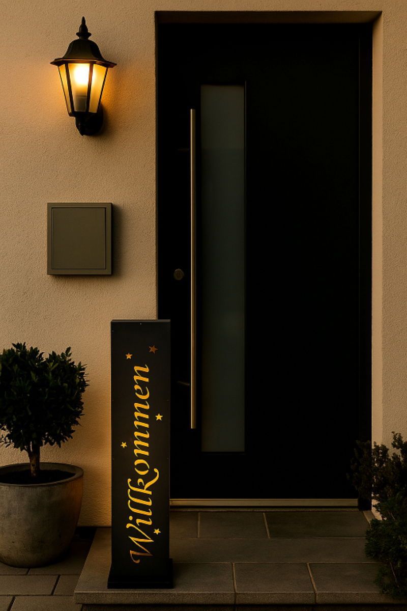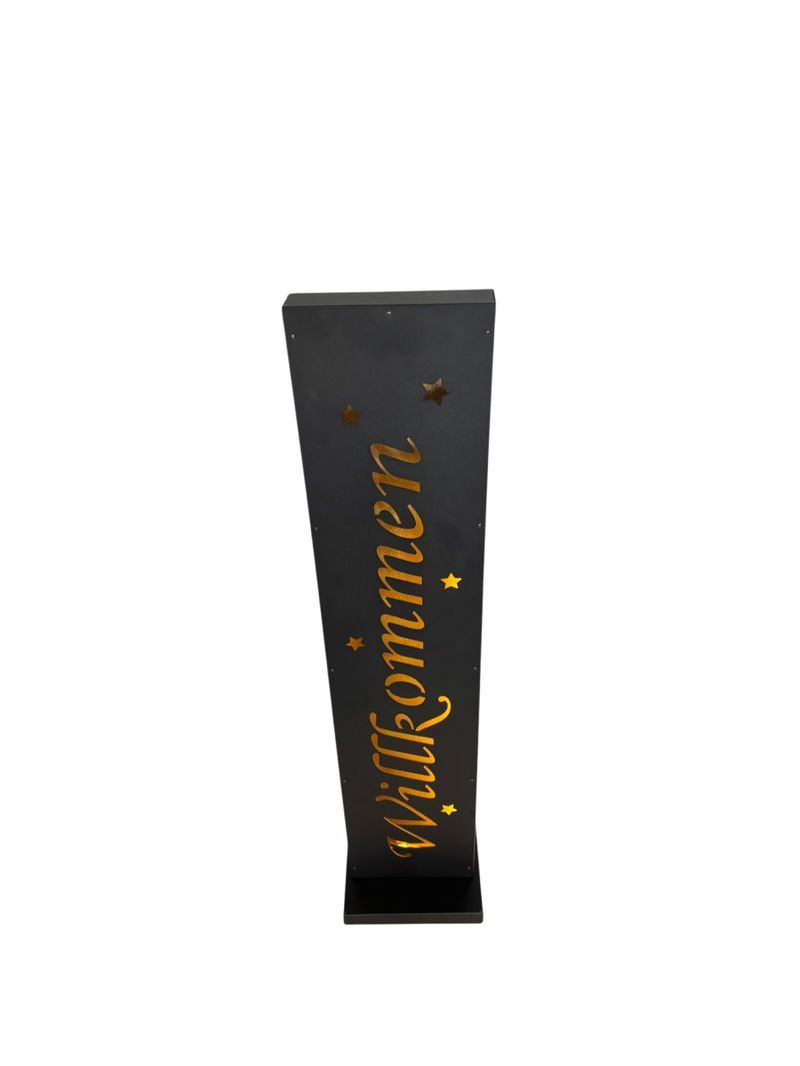 Westerholt LED Säule Willkommen 90cm hoch aus Metall mit Timer für Eingang außen