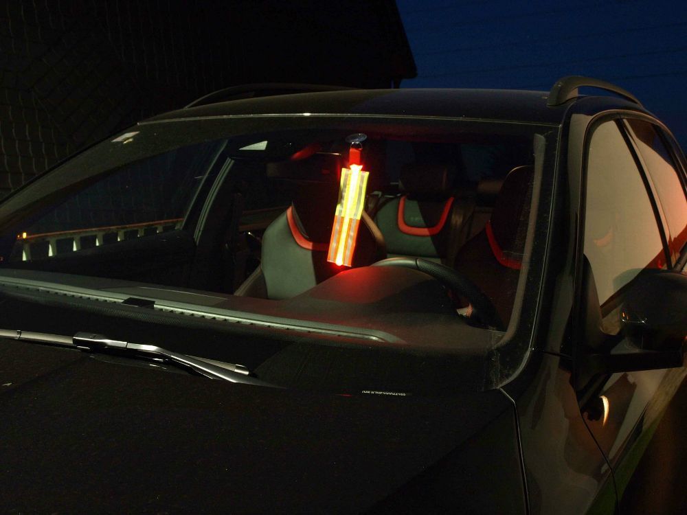 LED-Safety-Stick, groß - für Ihre Sicherheit. Die einzigartige Farbkombination mit dem reflektierendem Streifen sorgt für eine noch bessere Wahrnehmung. Bei Anbringung im Fahrzeuginnenraum mit Saugnapf leuchtet es in alle vier Richtungen. Bei Anbringung im Aussenbereich können Sie den Safety-Stick m