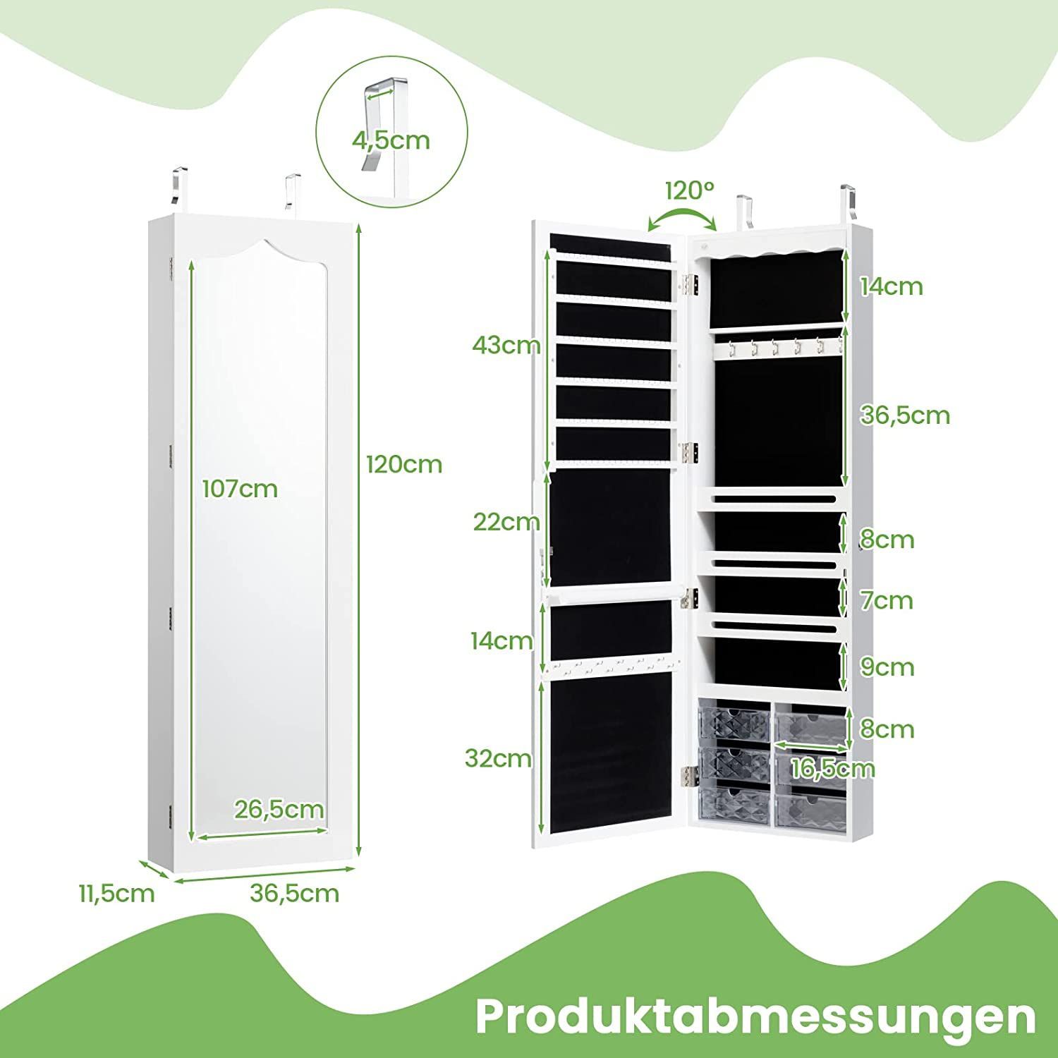 LED Schmuckschrank Hängeschrank, Schmuckregal mit Ganzkörperspiegel, Schmuck Schrank