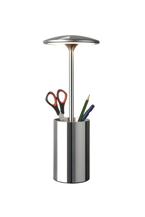Sompex LED Schreibtischlampe Pott Chrom leuchtender Stiftehalter