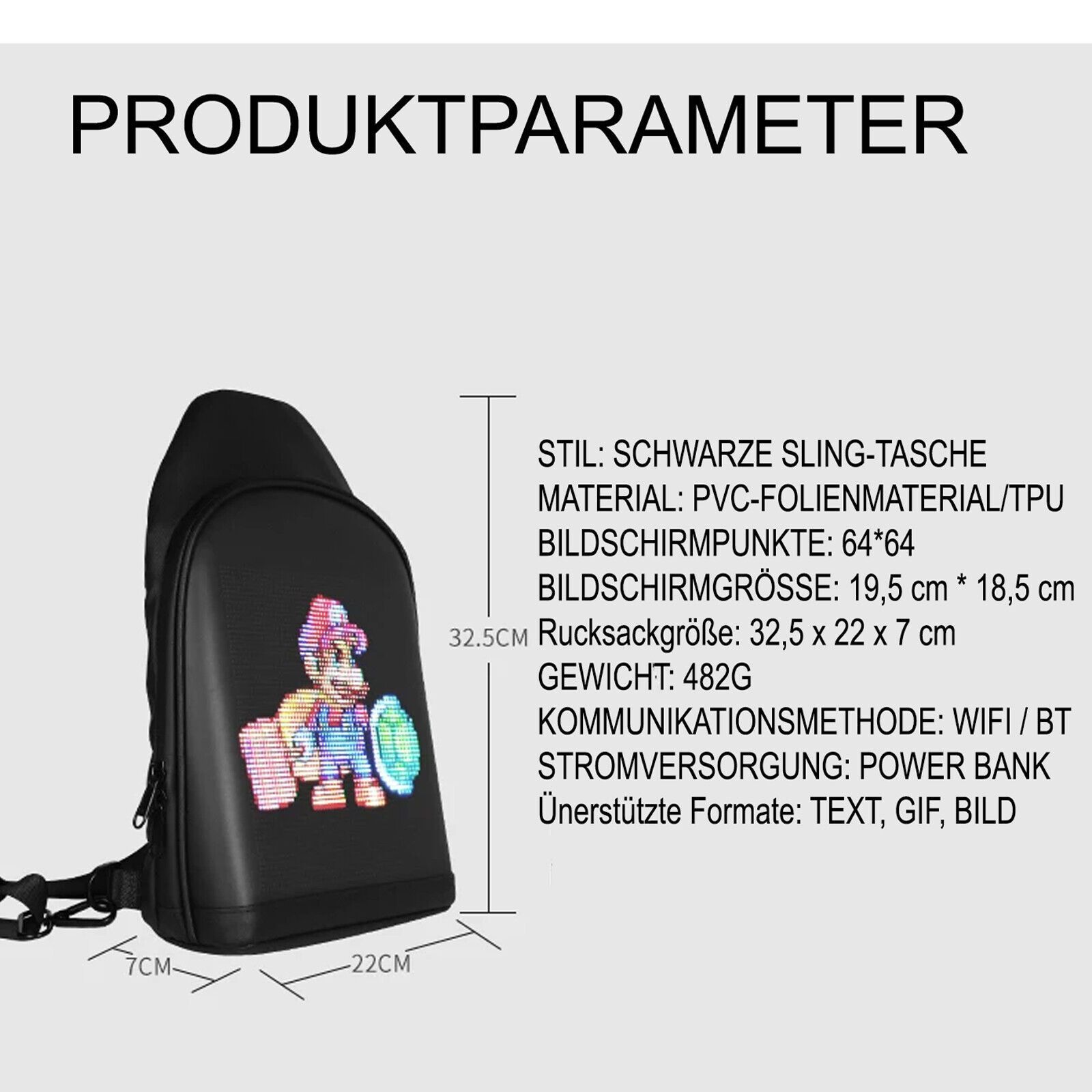 LED Schultertasche Umhängetasche Gürteltasche Bauchtasche Hüfttasche mit Anzeige