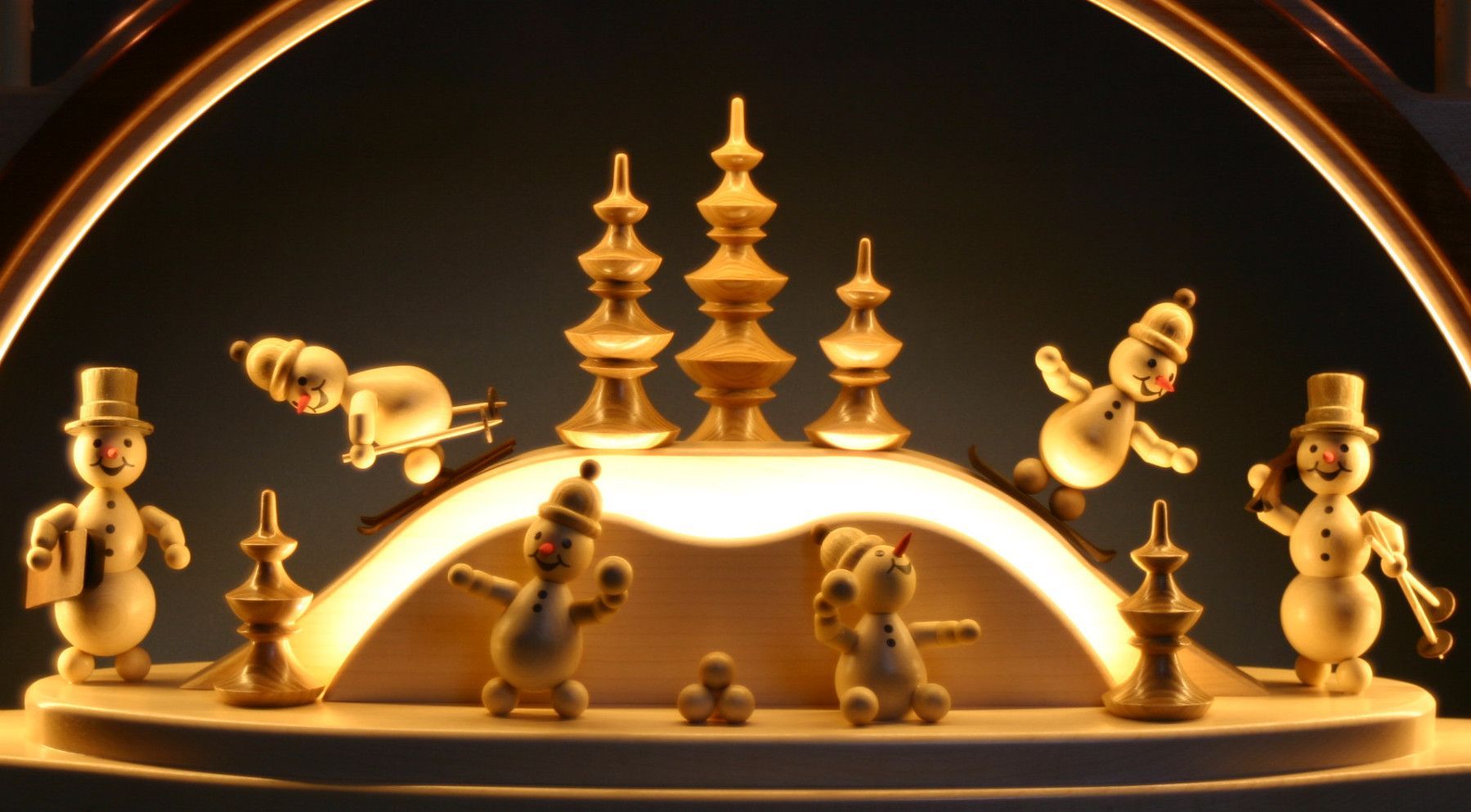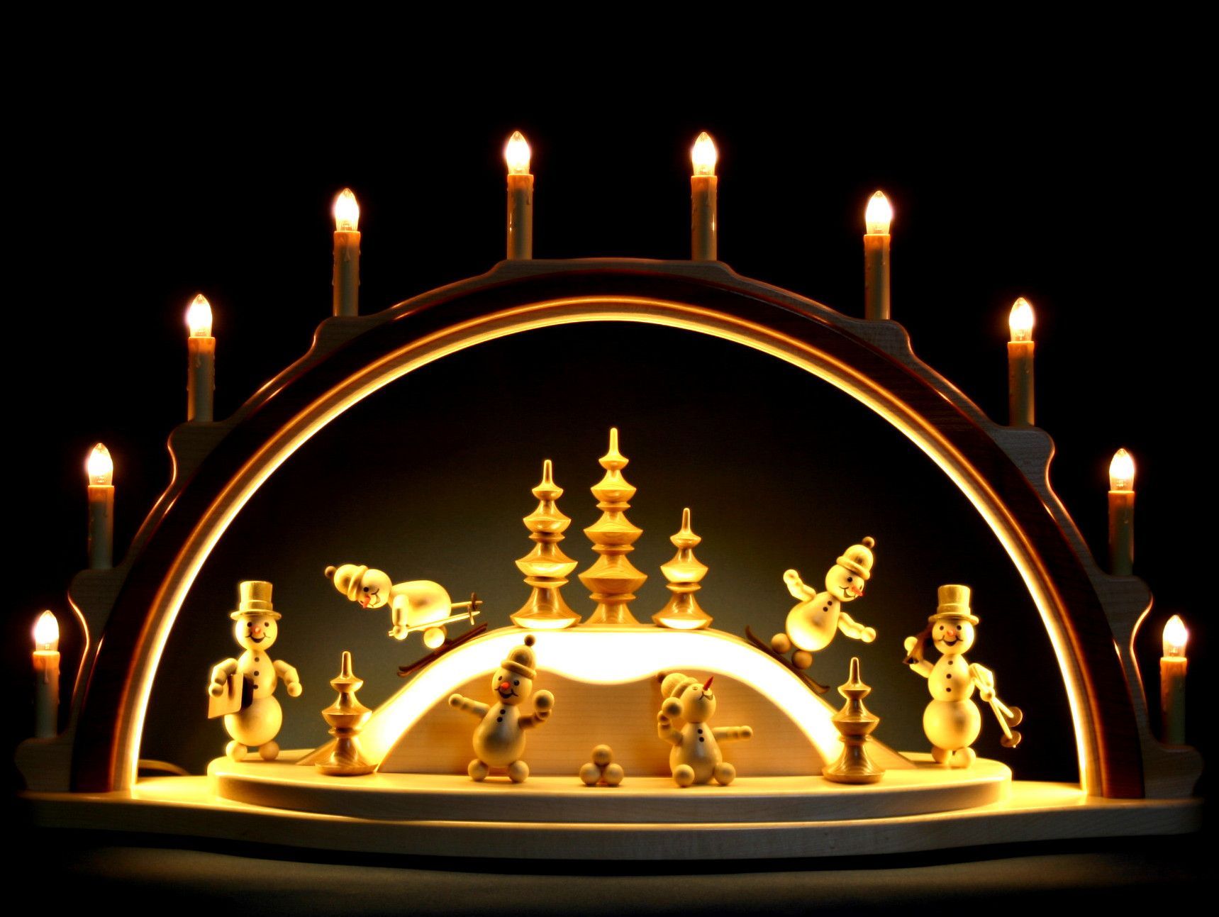 LED Schwibbogen 72cm Wagner Winterland Schneemann Holz massiv Erzgebirge