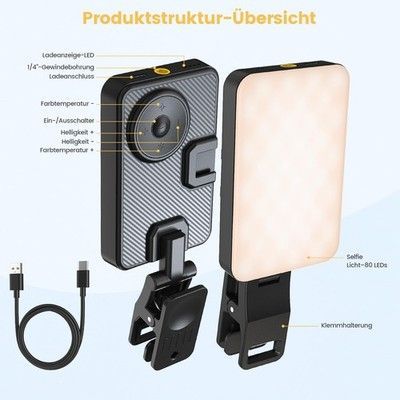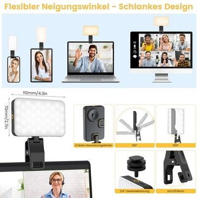5 Lichtmodi 360 Grad Clip für Smartphone Laptop und Kamera