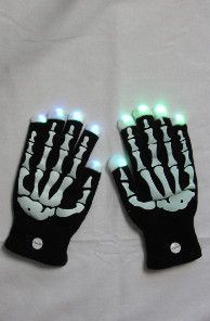 LED Skelett Knochen Leucht-Handschuhe Fingerhandschuhe Halloween Karneval Fastnacht S