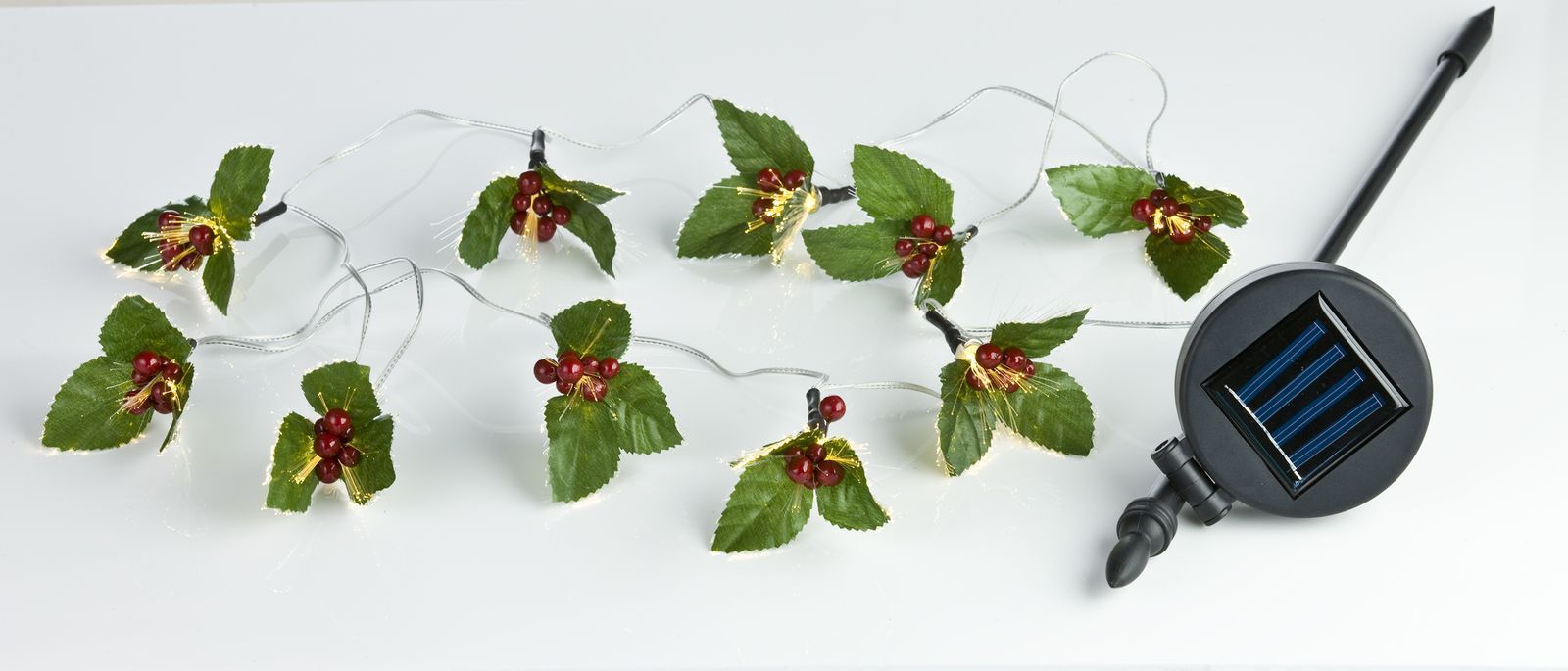 LED Solar-Lichterkette Ilex Stechpalme Girlande Weihnachtsdeko Balkondeko