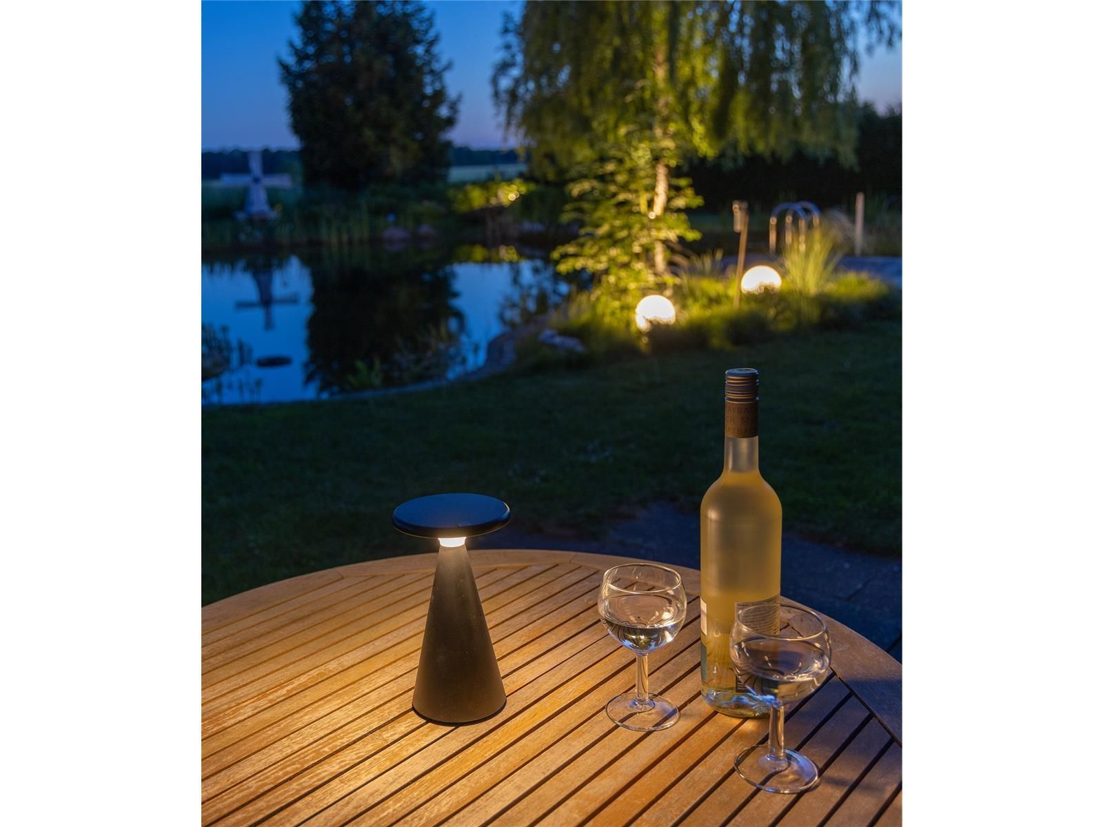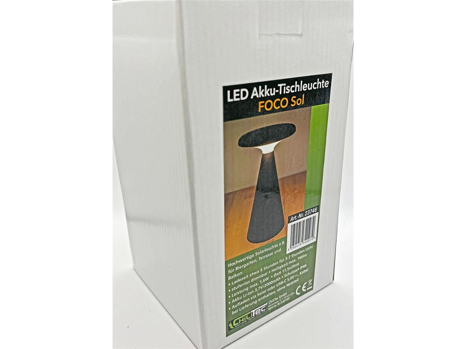 ChiliTec LED Solar-Tischleuchte "Foco Sol" 2700K, IP44, dimmbar, 20cm, matt schwarz