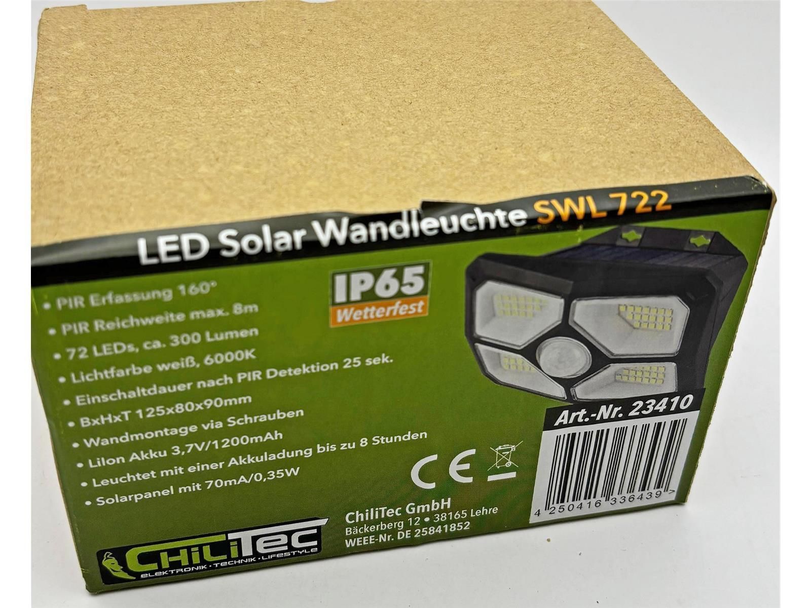 ChiliTec LED Solar Wandleuchte "SWL 722"PIR Bewegungsmelder, 72 LEDs, IP65