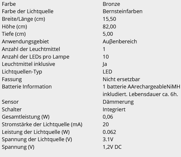 Star Trading LED Solarstab "Melilla" Flame flackernd 15,5x82cm Metall Solarleuchte 482-47