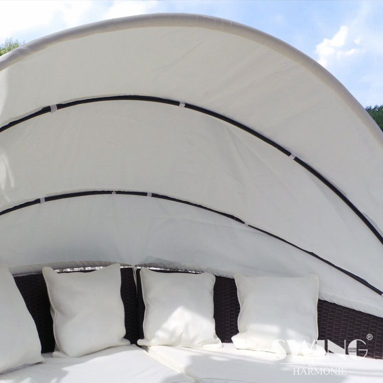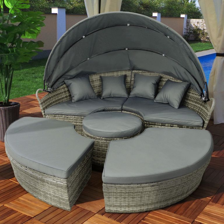 LED Sonneninsel Polyrattan Gartenliege XXL 210cm Grau, Sitzgruppe Liege