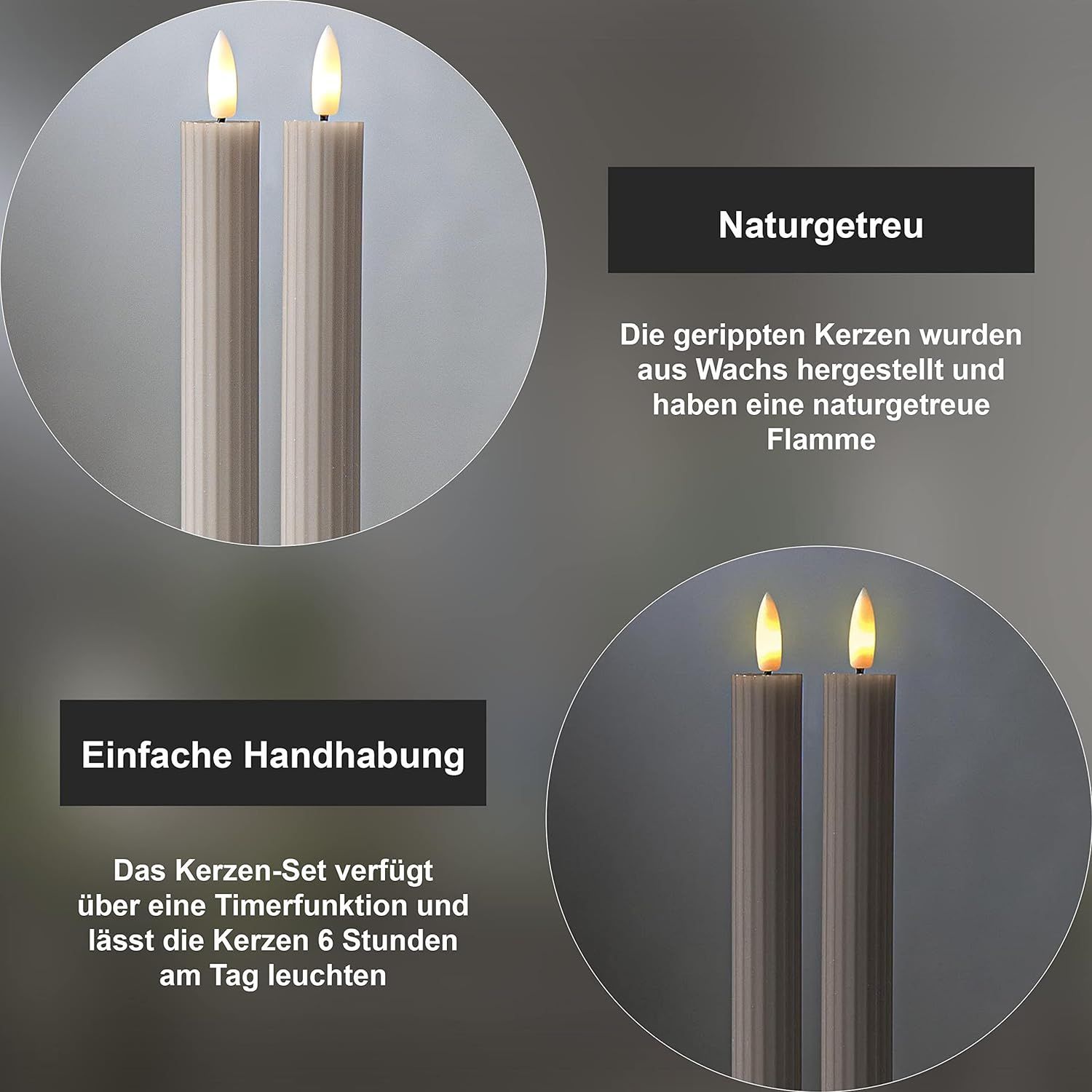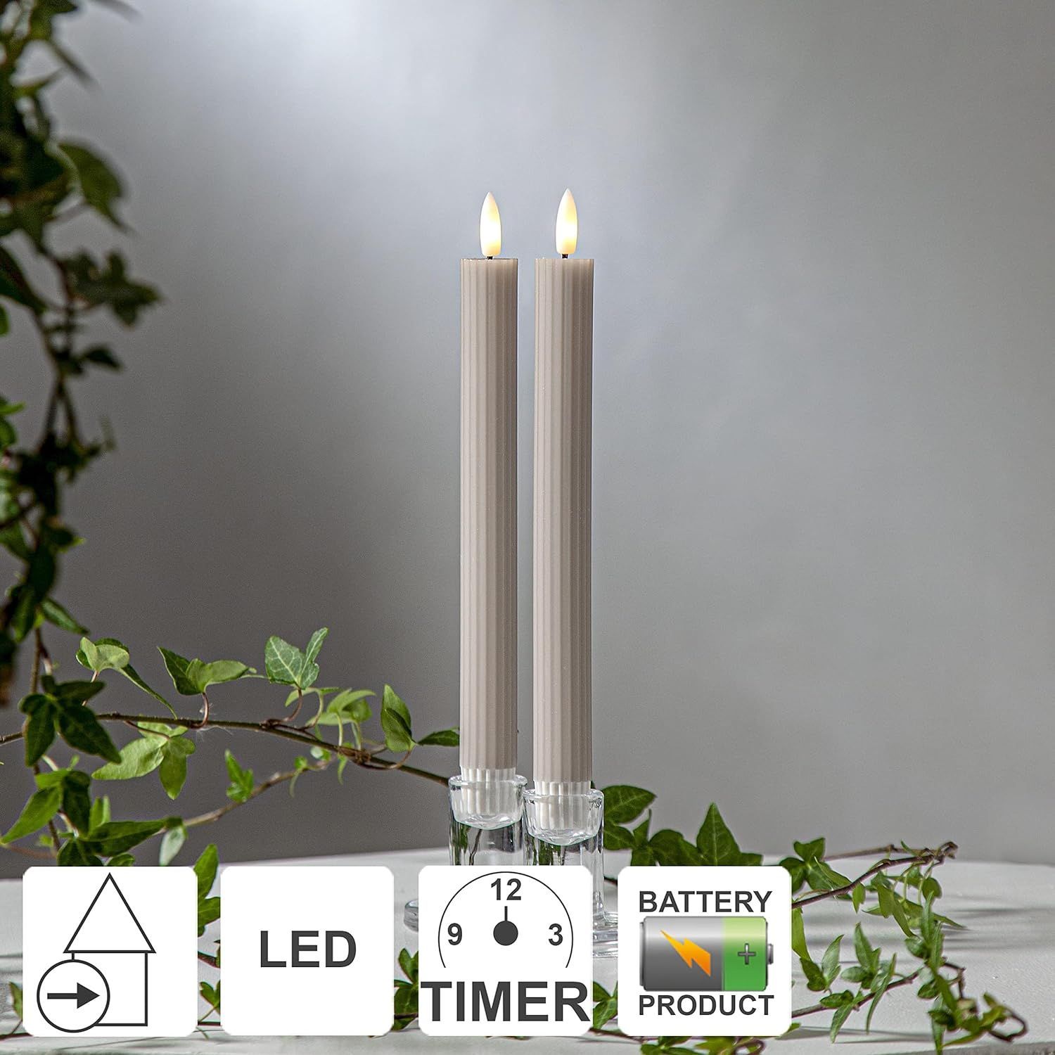 LED Stabkerze Flamme Stripe 2er-Set aus Wachs
