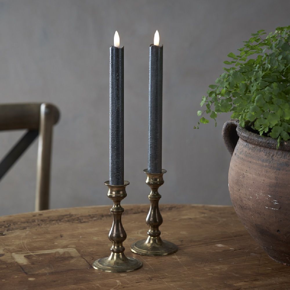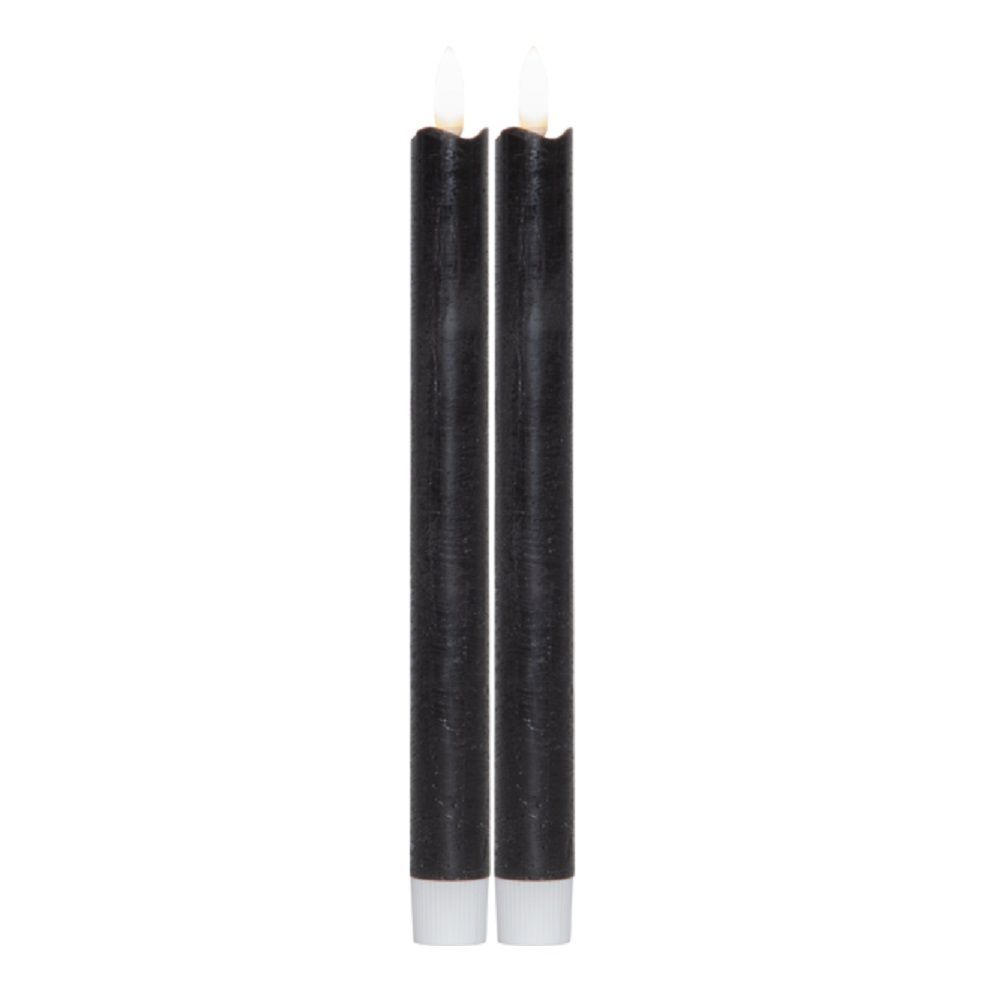 LED Stabkerze schwarz lang 2er flackernd 24x2,1cm Timer Batterie 062-97