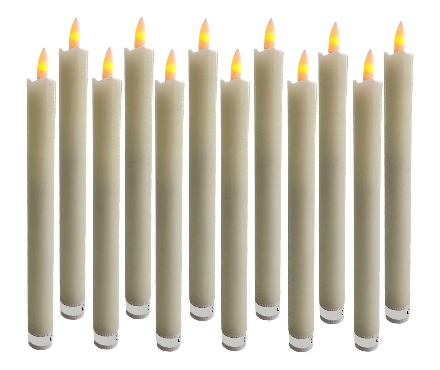 LED Stabkerzen 25 cm - 12 Stück - elektrische Kerze flackernd Batterie betrieben