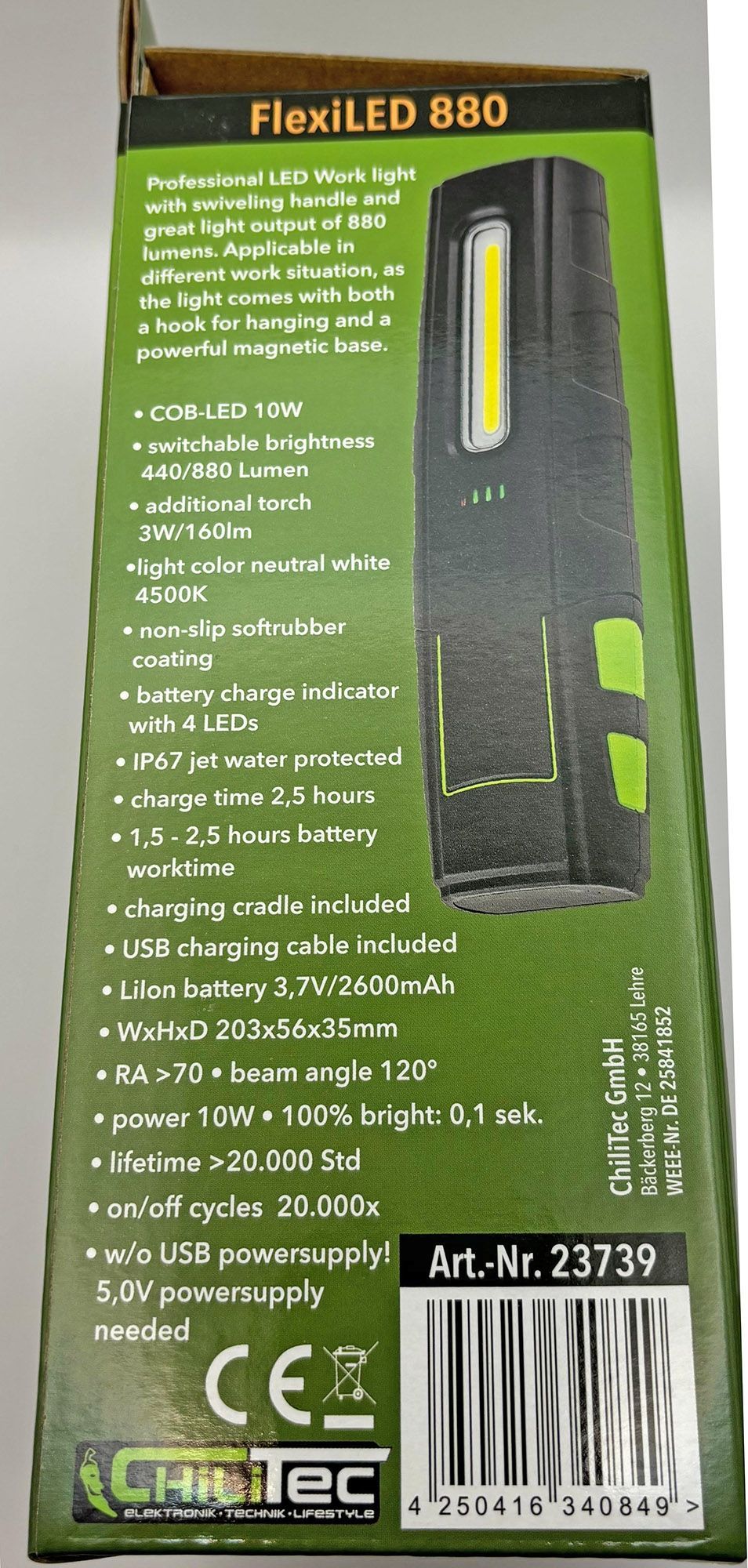 ChiliTec LED Stableuchte mit Akku "FlexiLED 880" Ladeschale, Magnetfuß,10W, 880lm, P67