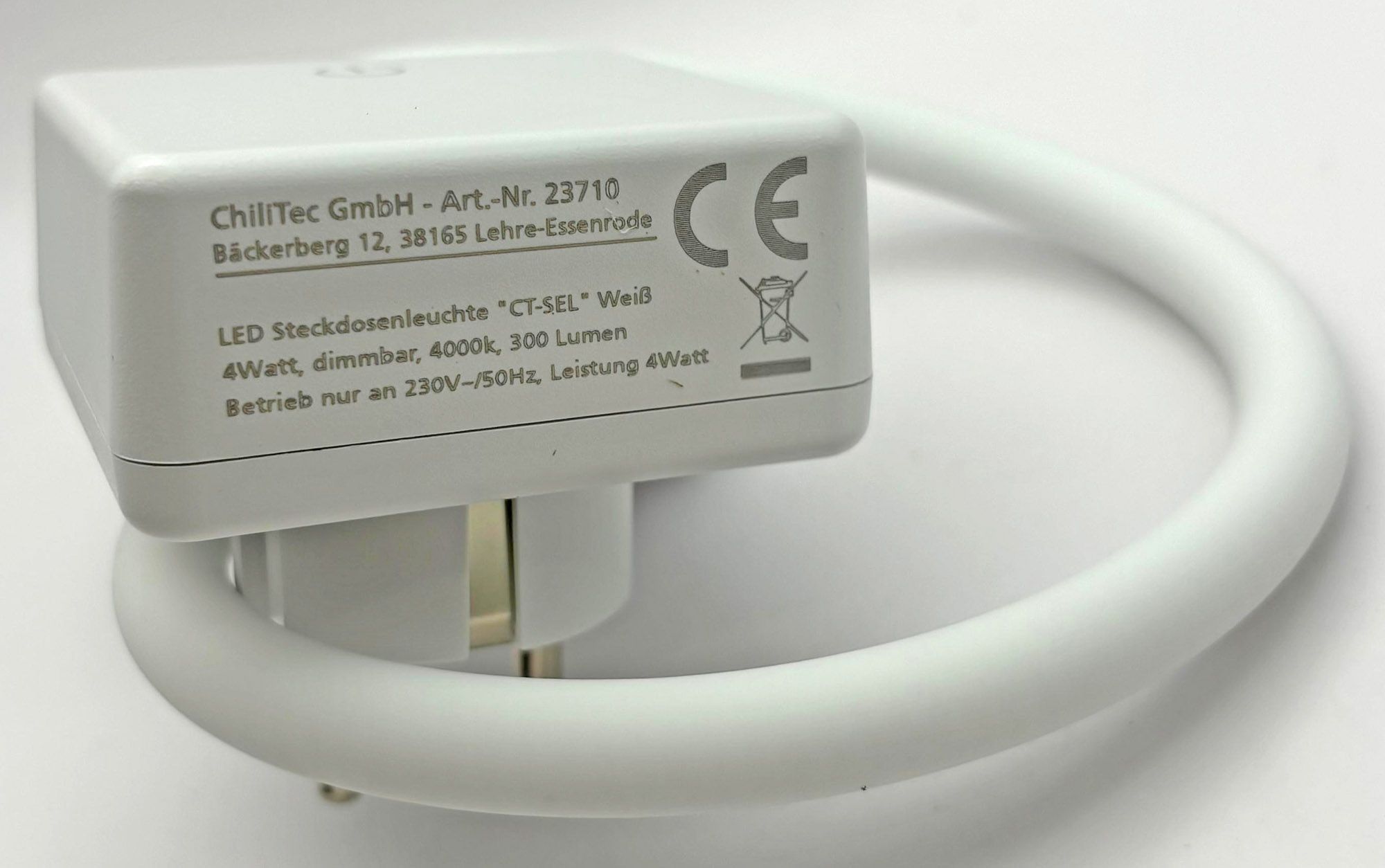 ChiliTec LED Steckdosenleuchte "CT-SEL" Weiß 4Watt, dimmbar, 4000k, 300 Lumen