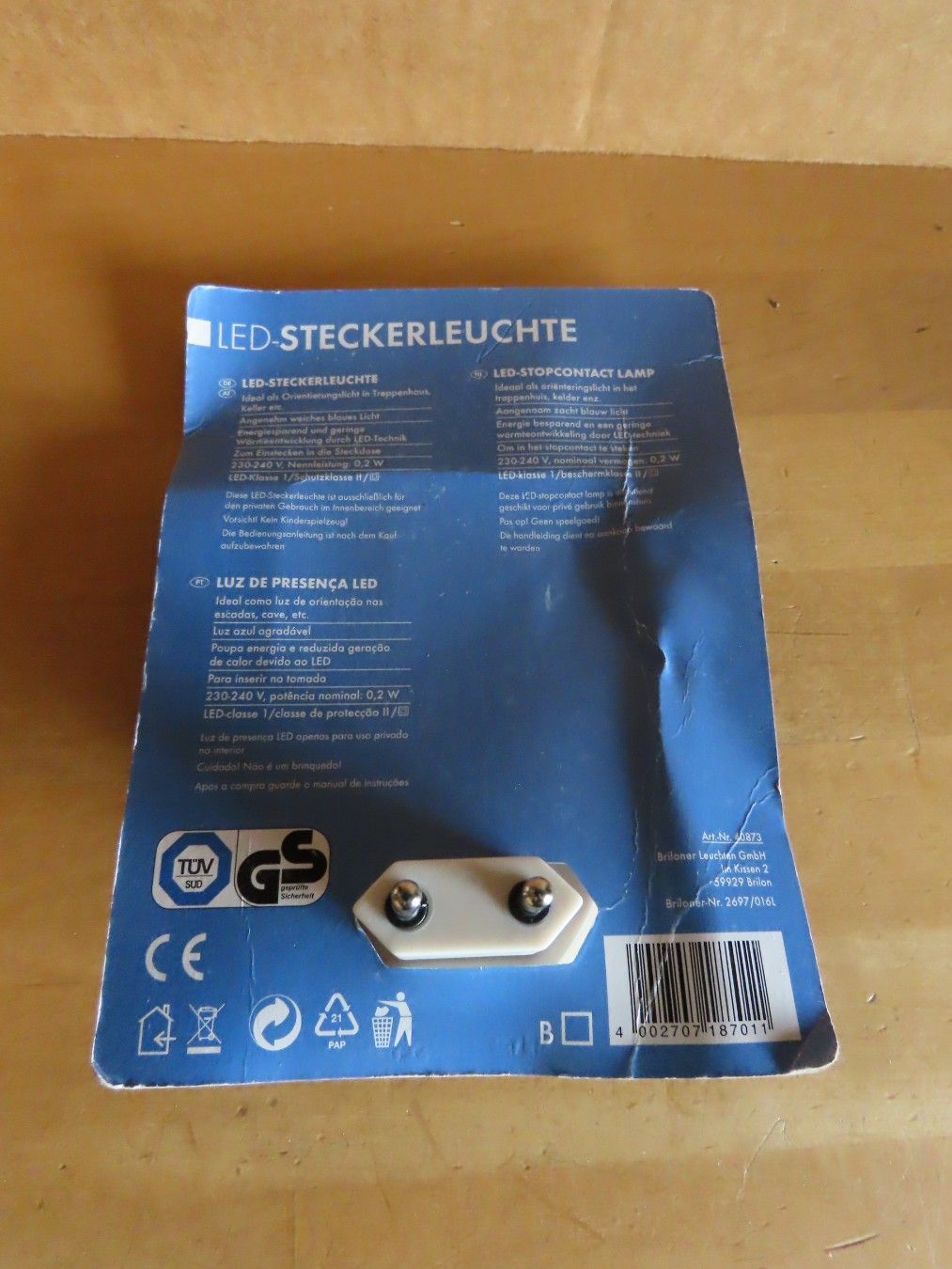 LED-Steckerleuchte weiches blaues Licht für die Steckdose