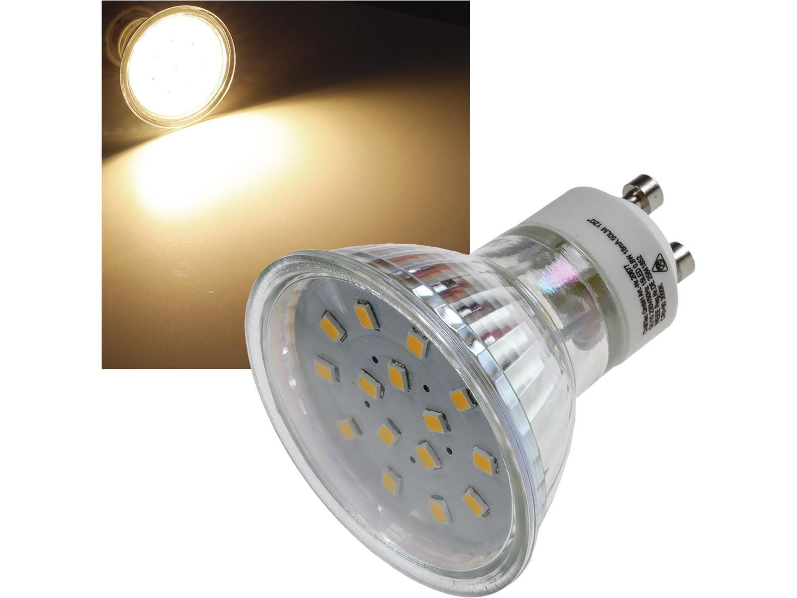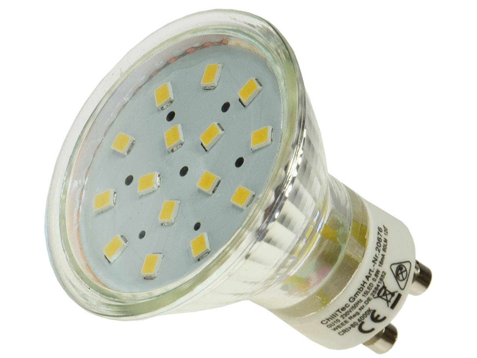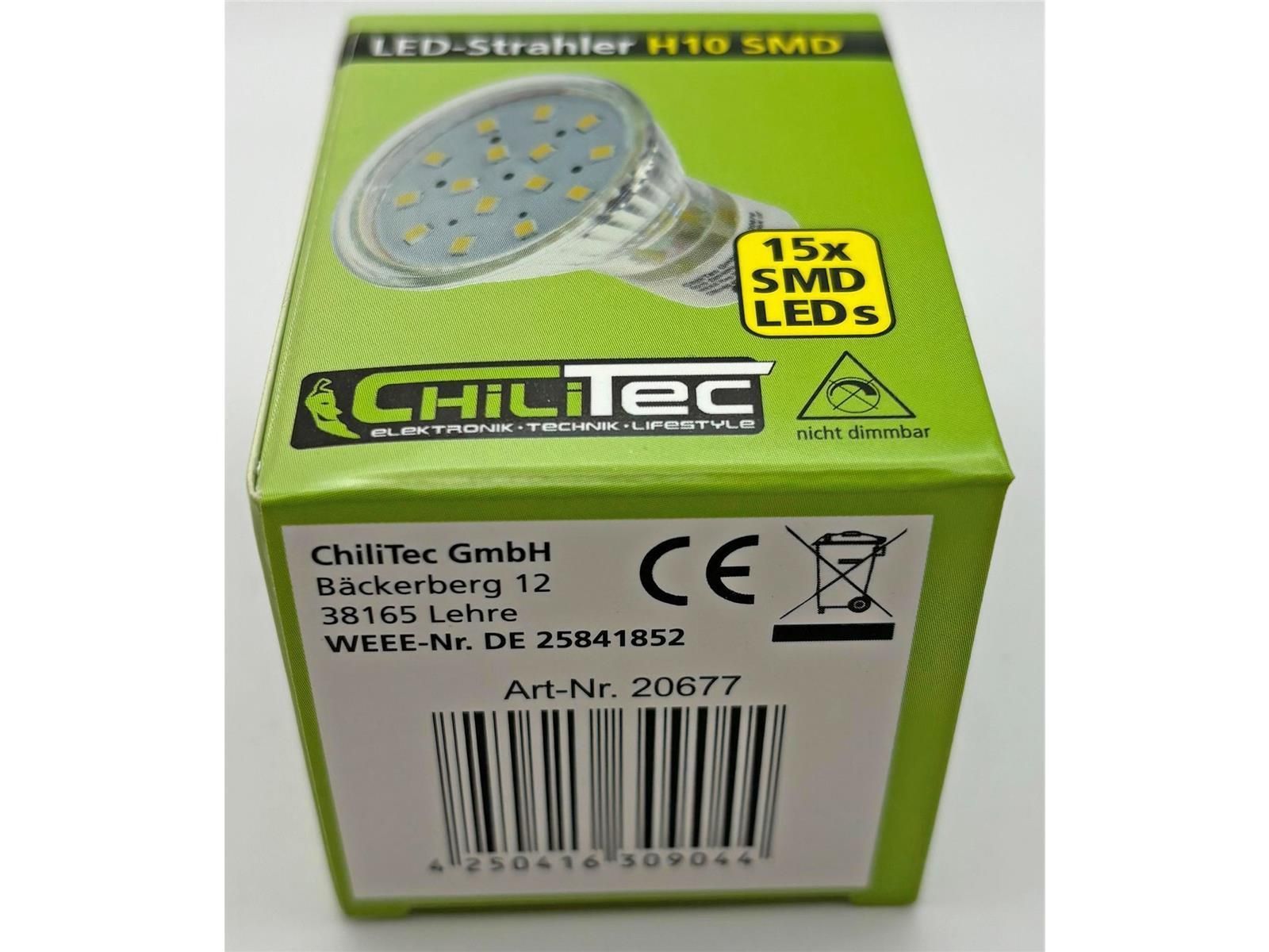 ChiliTec LED Strahler GU10 "H10 SMD" 15 SMD LEDs3000k, 50lm, 120°, 230V/0,8W, warmweiß