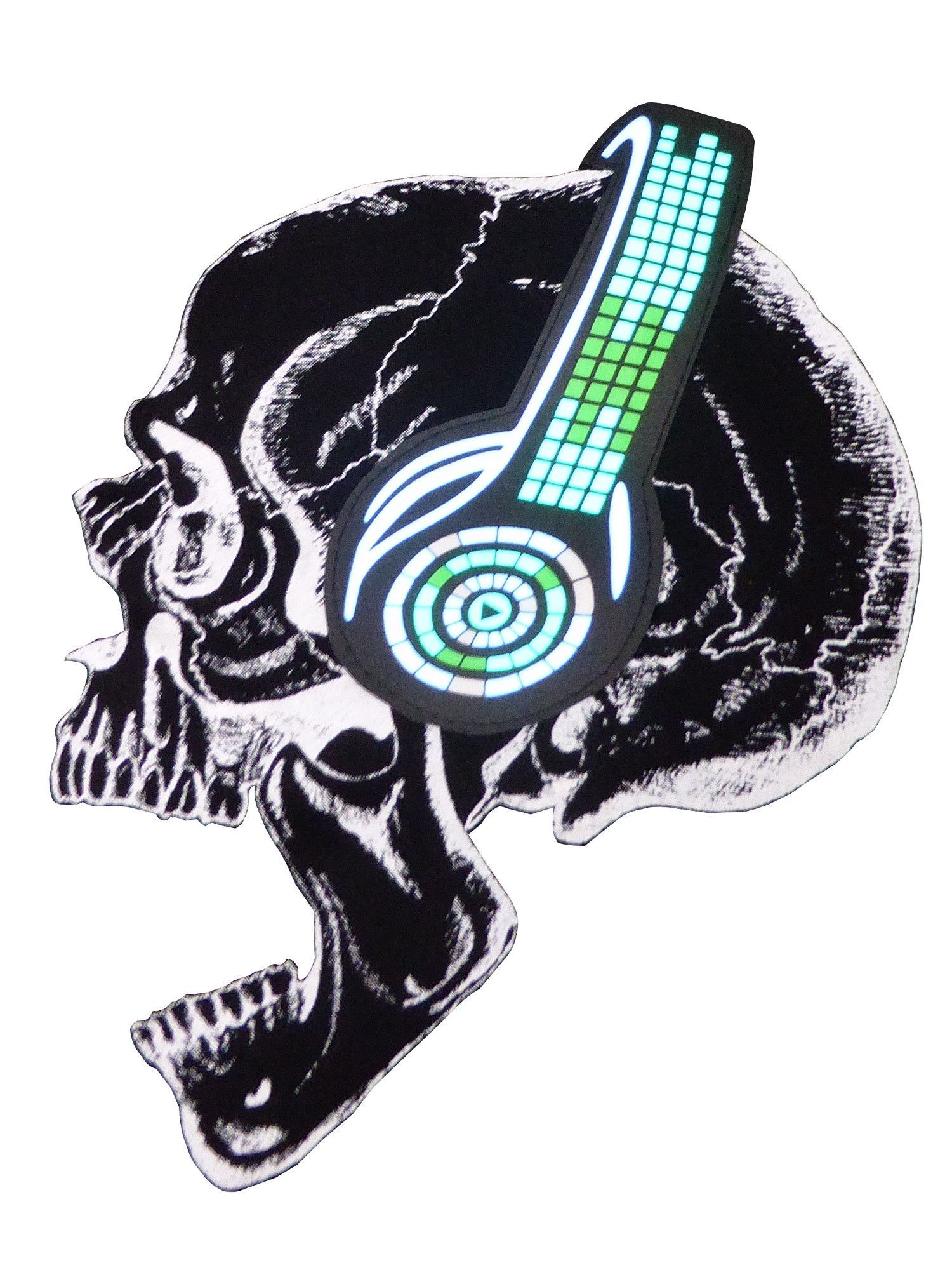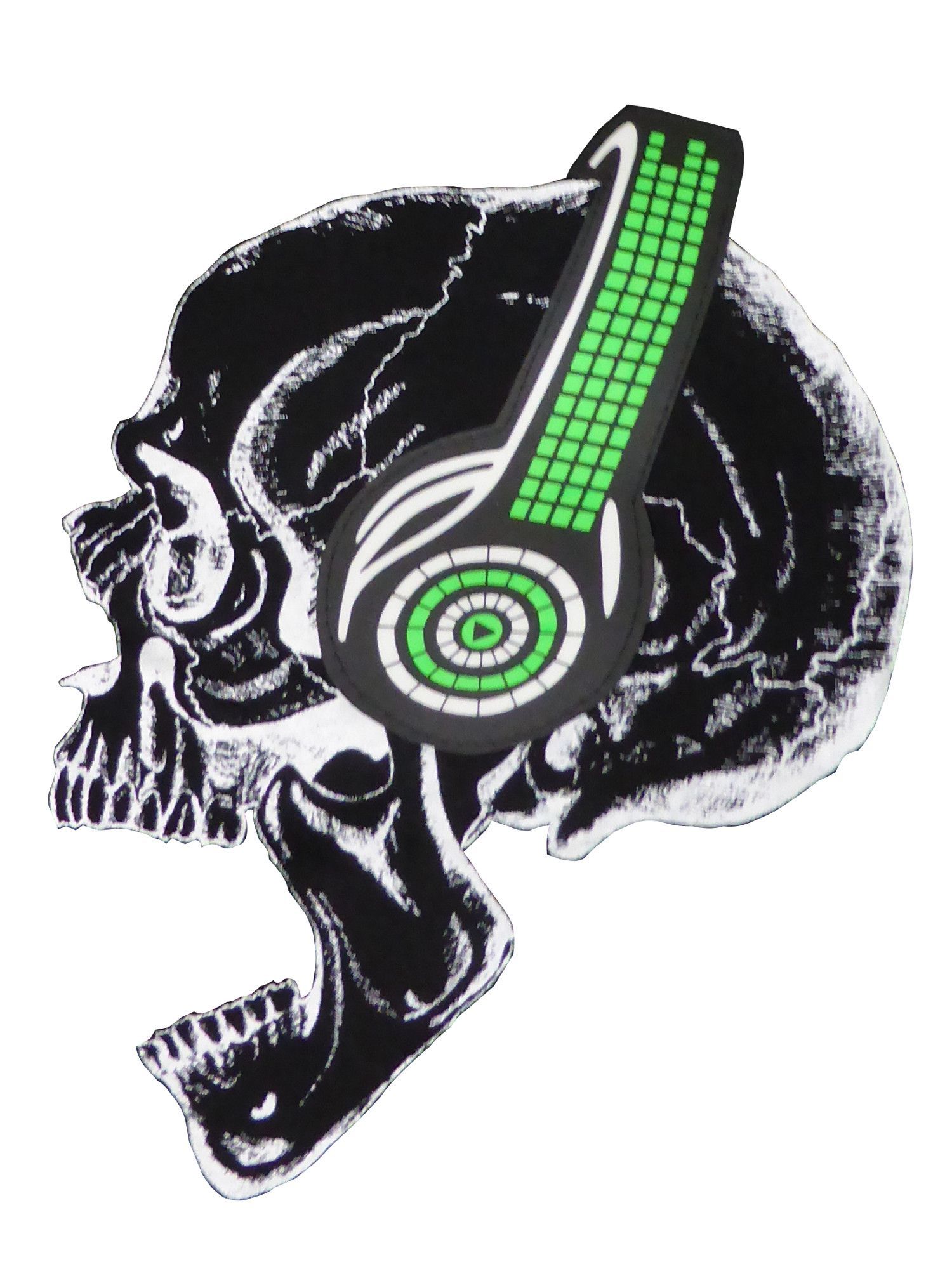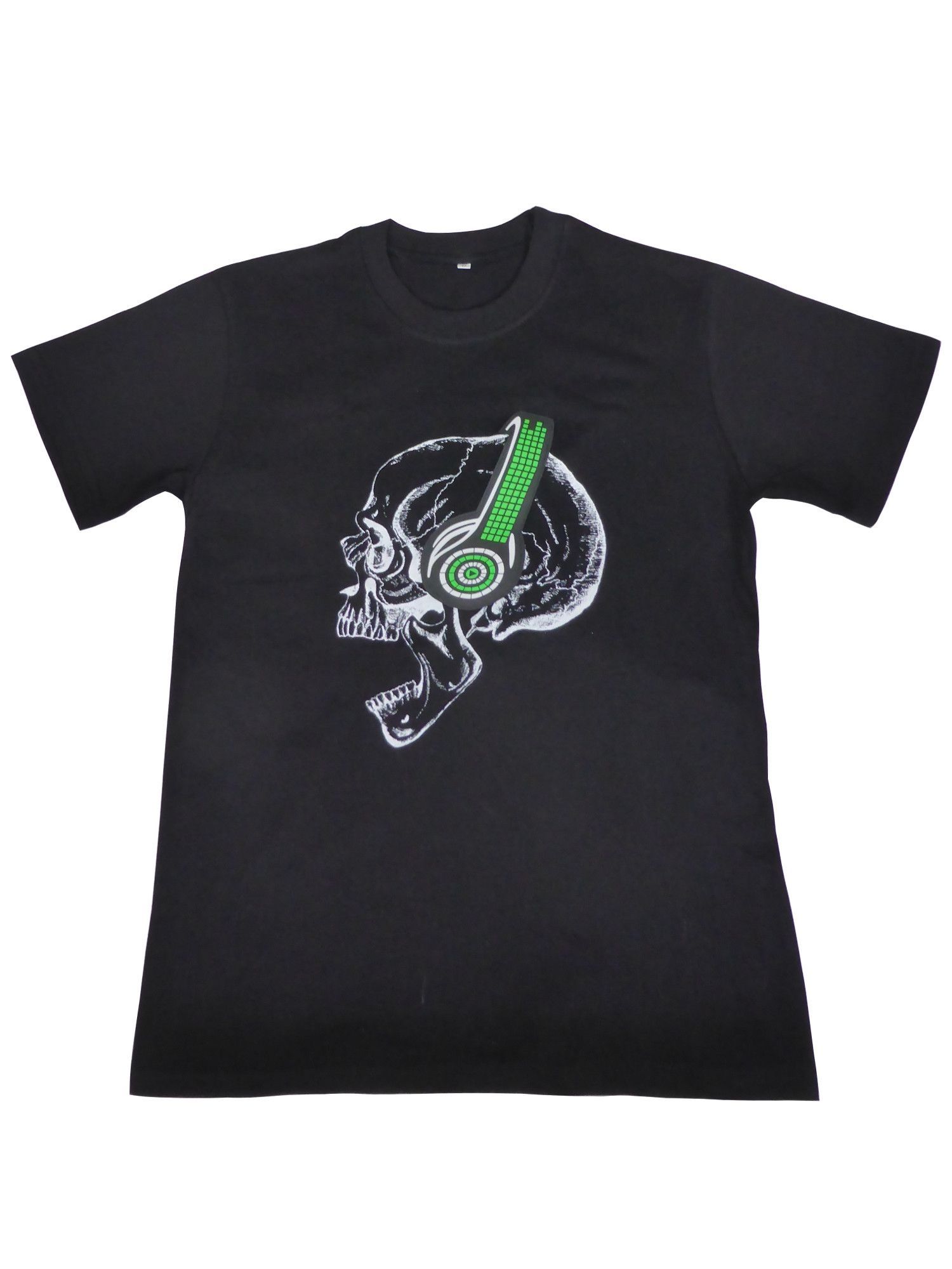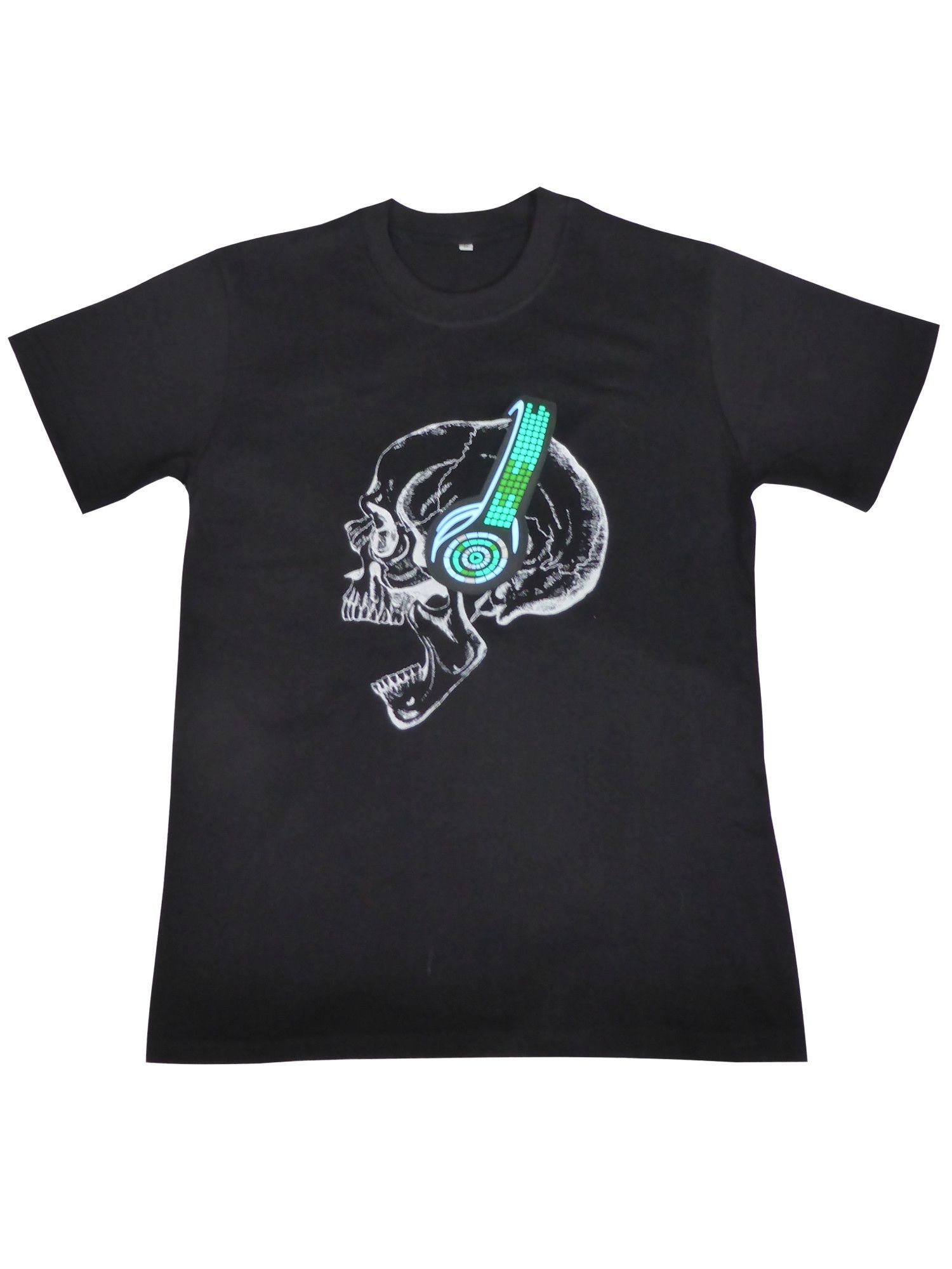 LED T-Shirt aus Baumwolle mit Leuchtpanel Motiv-Druck Totenkopf mit Kopfhörer