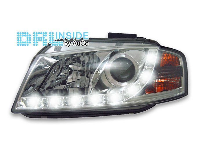 LED Tagfahrlicht Scheinwerfer CHROM AUDI A3 8P 03-08 R87 Zulassung + E. Prüfzeichen