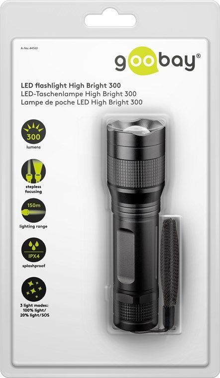 Goobay LED Taschenlampe High Bright 300, Schwarz, 5 W, 300lm, f. 3x AAA Batterie
