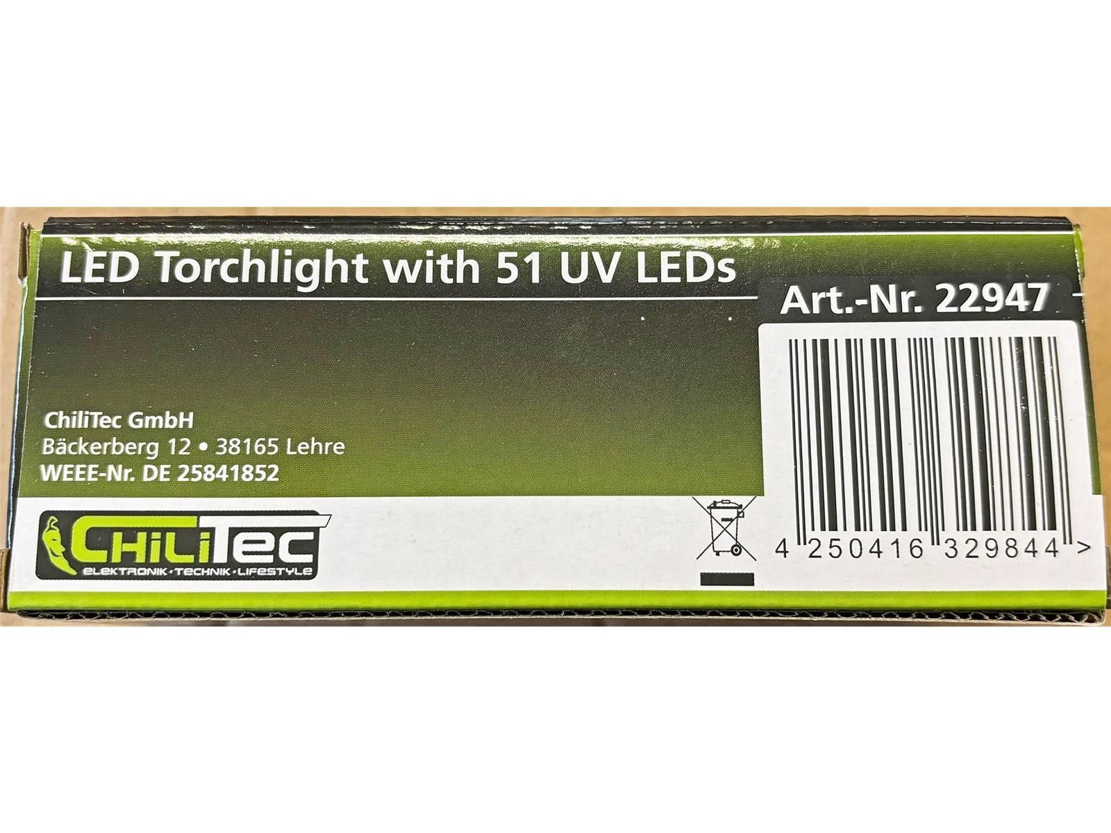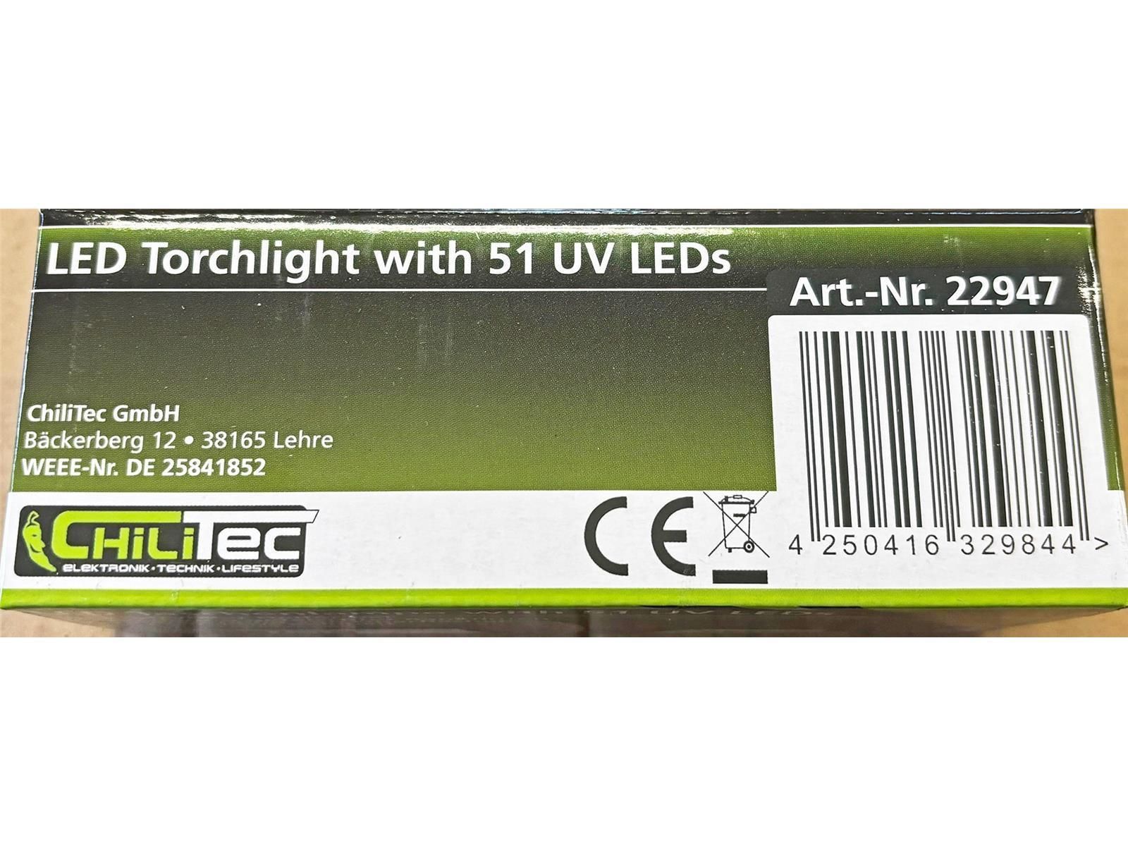 ChiliTec LED-Taschenlampe mit 51 UV LEDsSchwarzlicht, ØxL 55x145mm