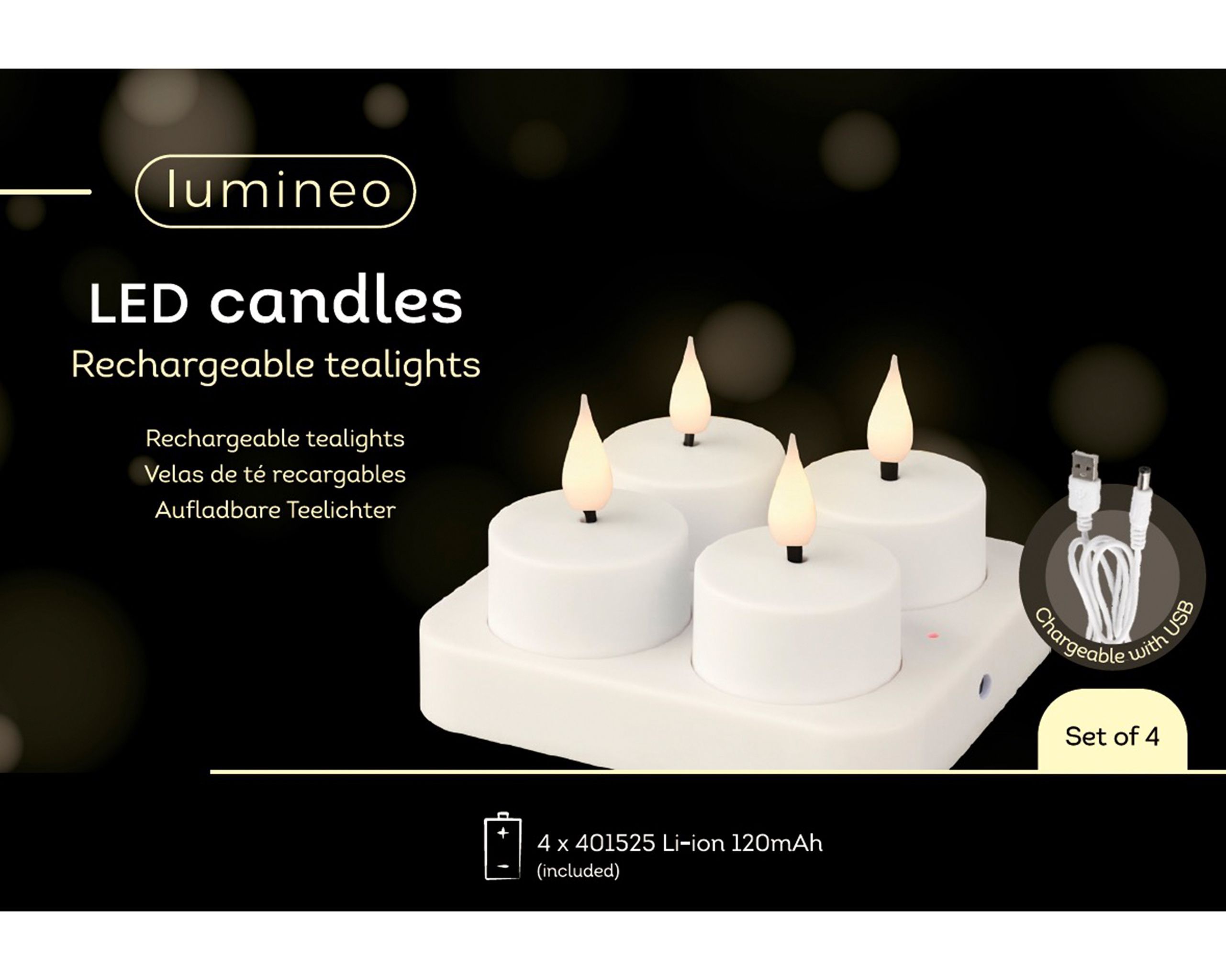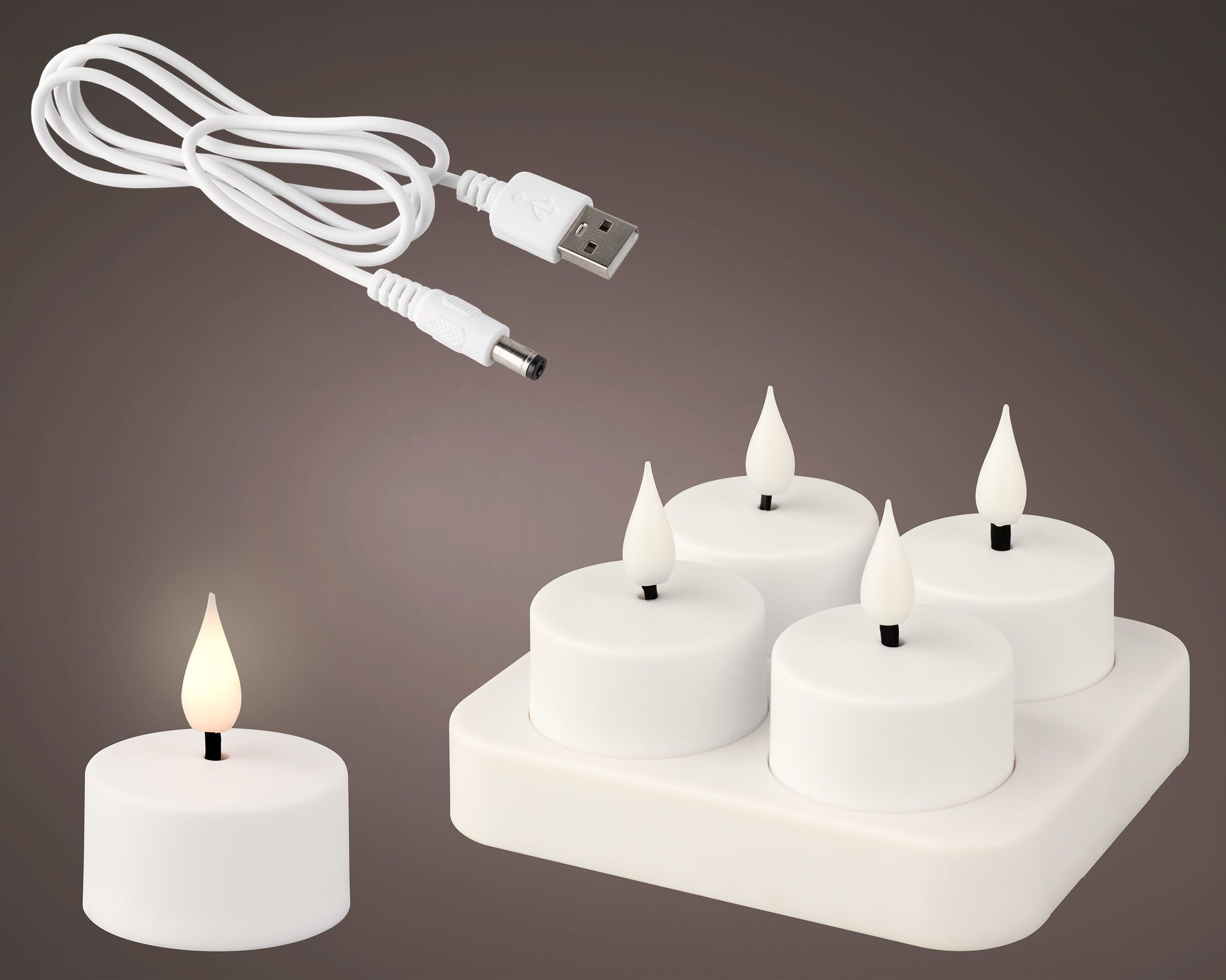 LED Teelichter 4cm Kunststoff 4er Set Weiß / Warmweiß