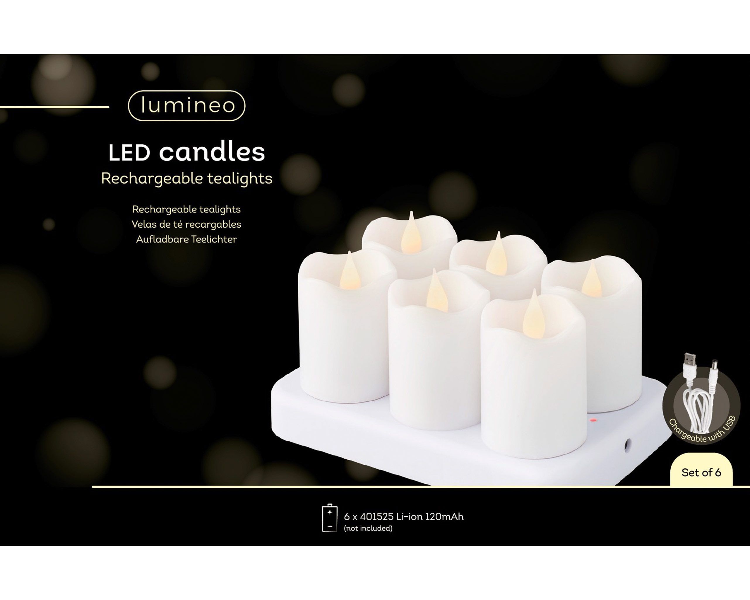 LED Teelichter 4cm Kunststoff 6er Set Weiß / Warmweiß