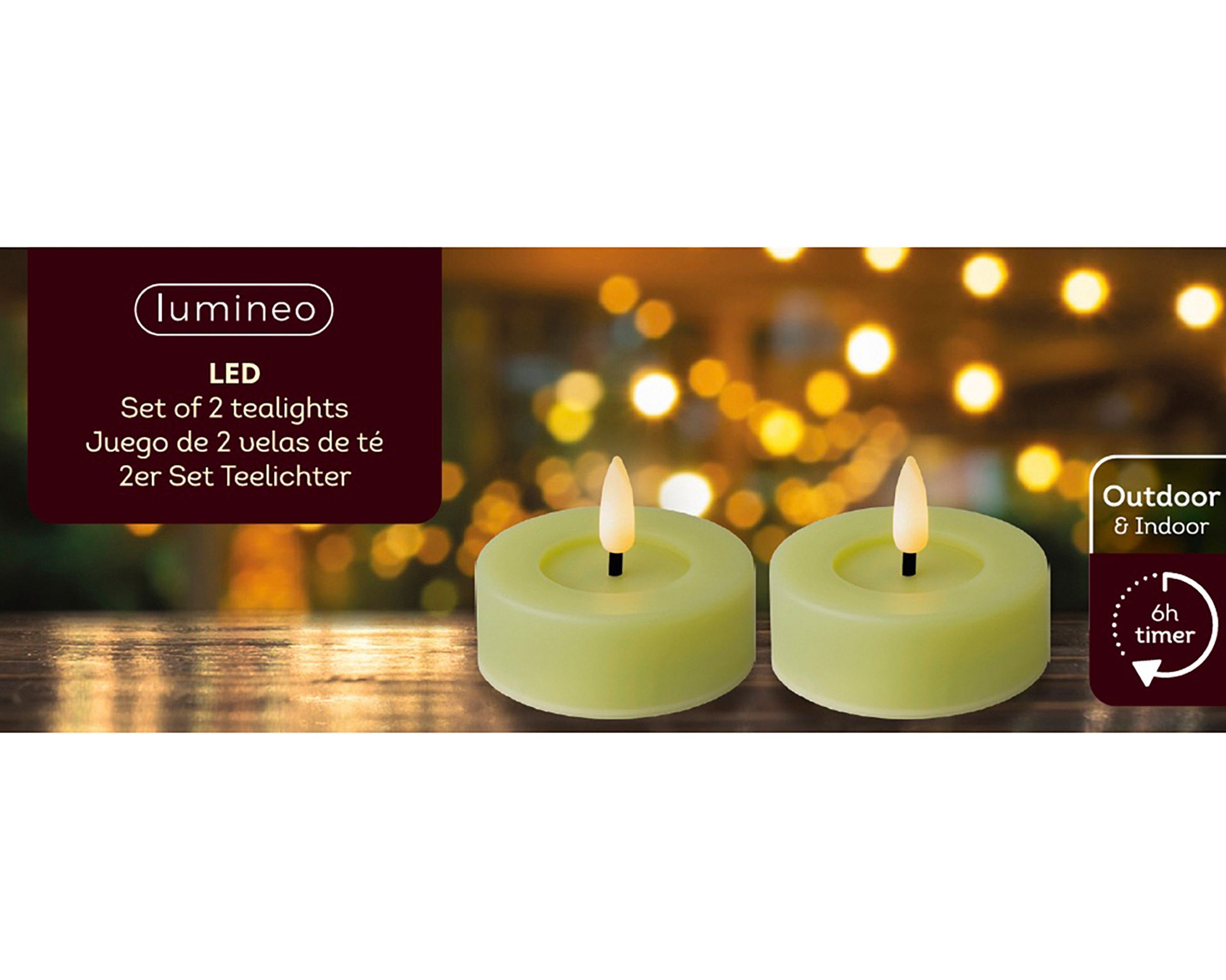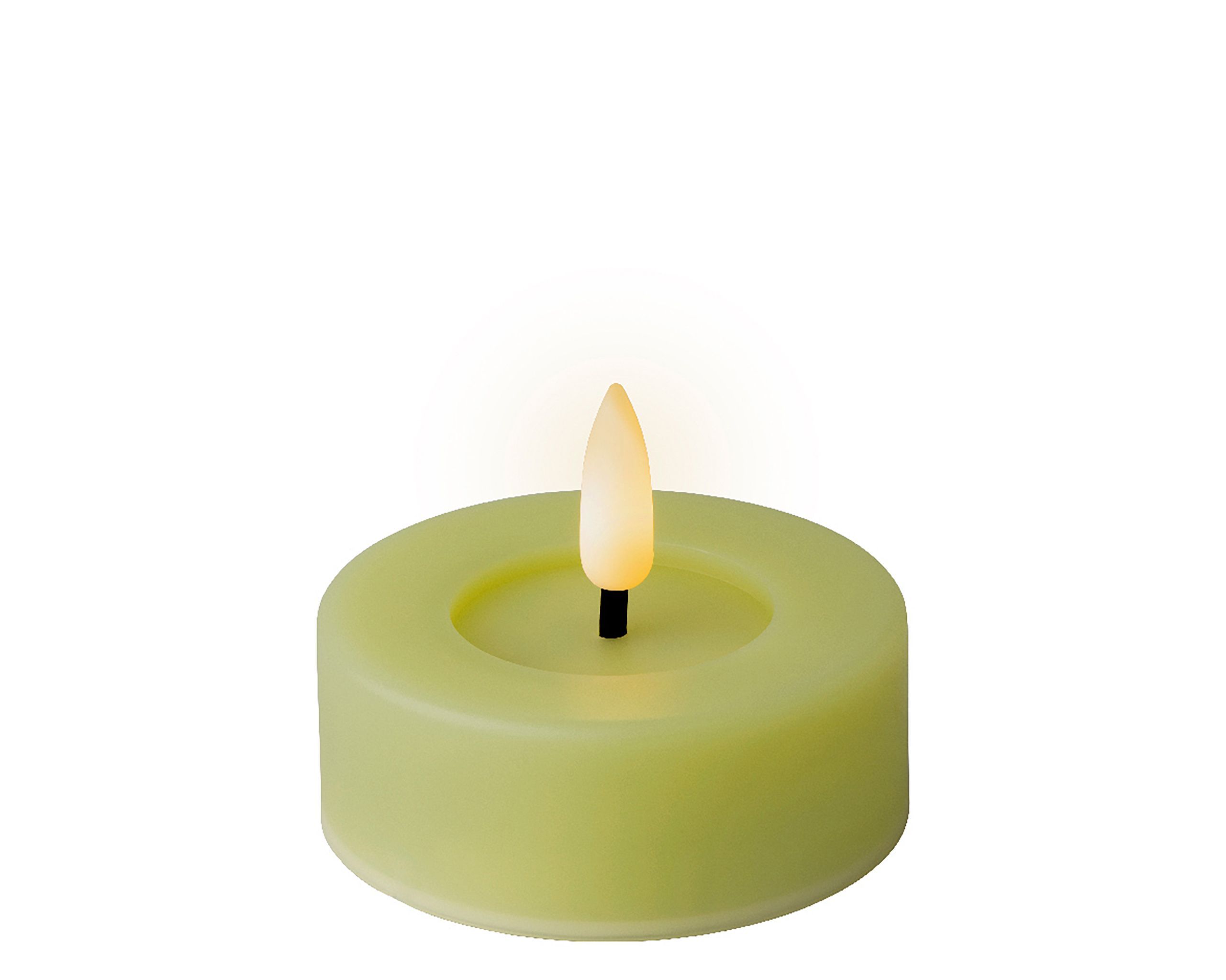 LED Teelichter 6,5x5cm mit Timer Outdoor 2 Stück Hellgrün / Warmweiß