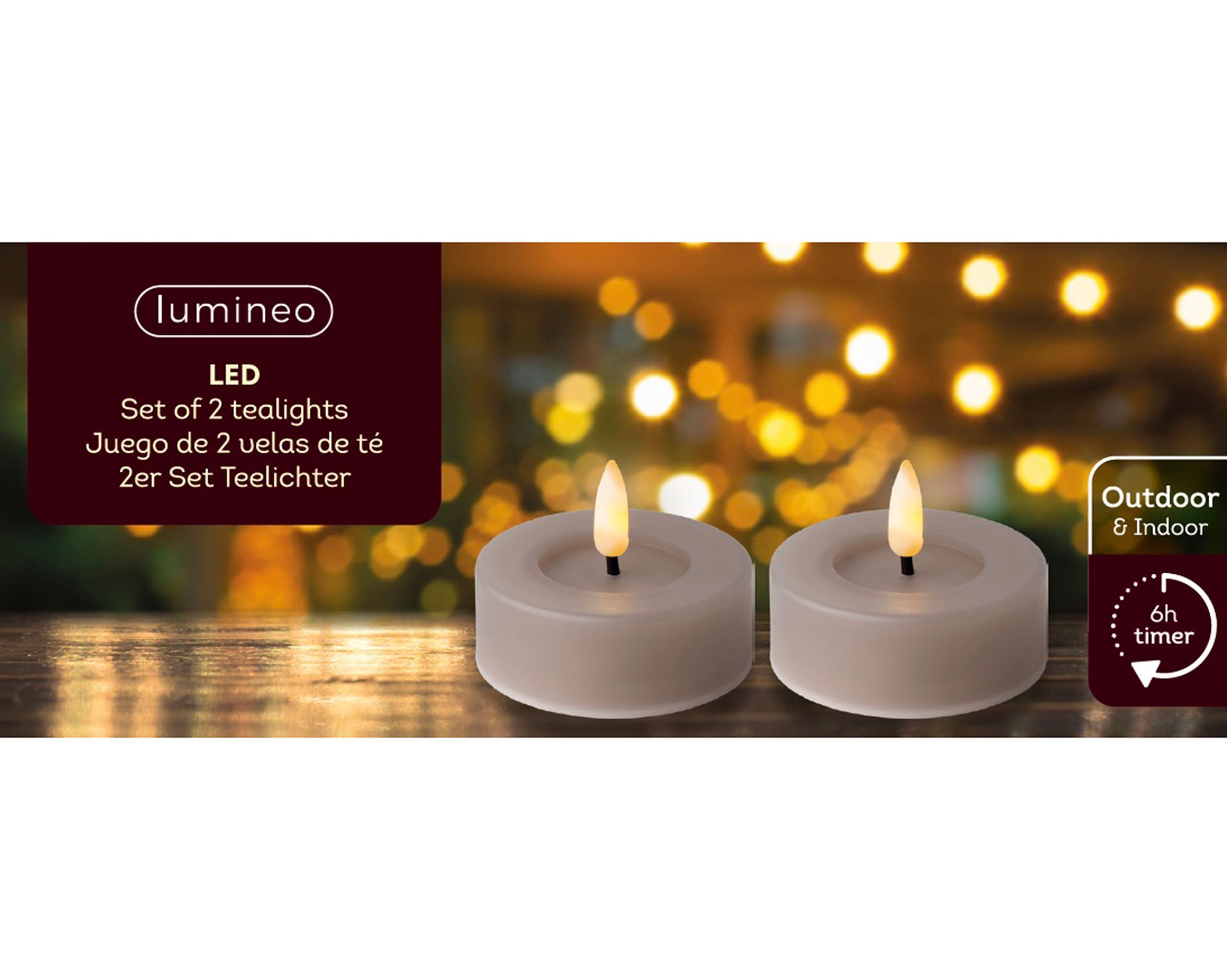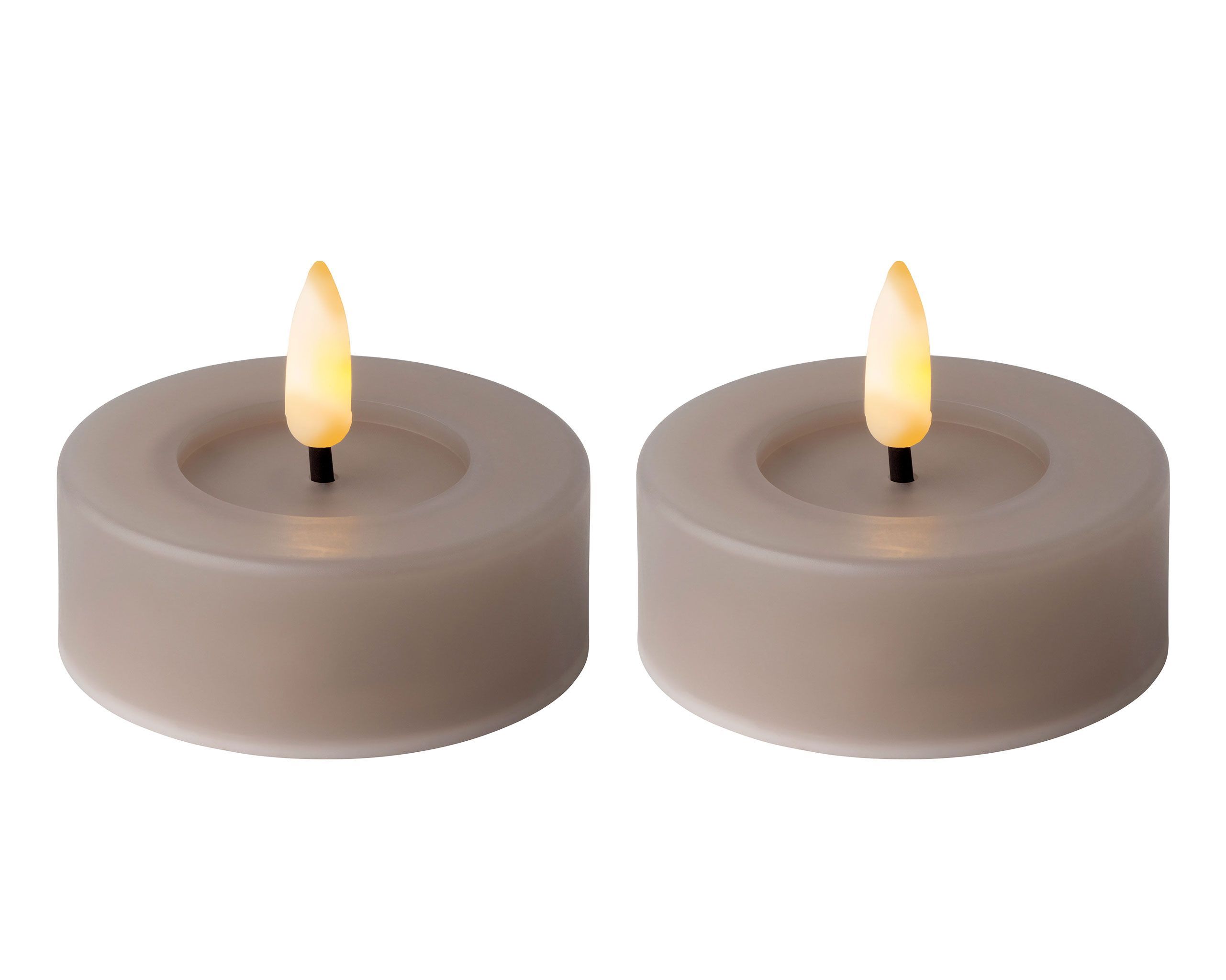 LED Teelichter mit Timer Outdoor 6,5x5cm Grau / Warmweiß 2 Stück
