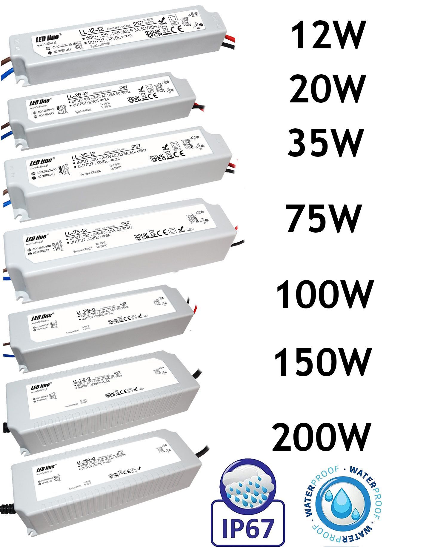LED Trafo 12W - 200W 12V 24V Netzteil IP67 Wasserdicht Transformator für LED Leuch