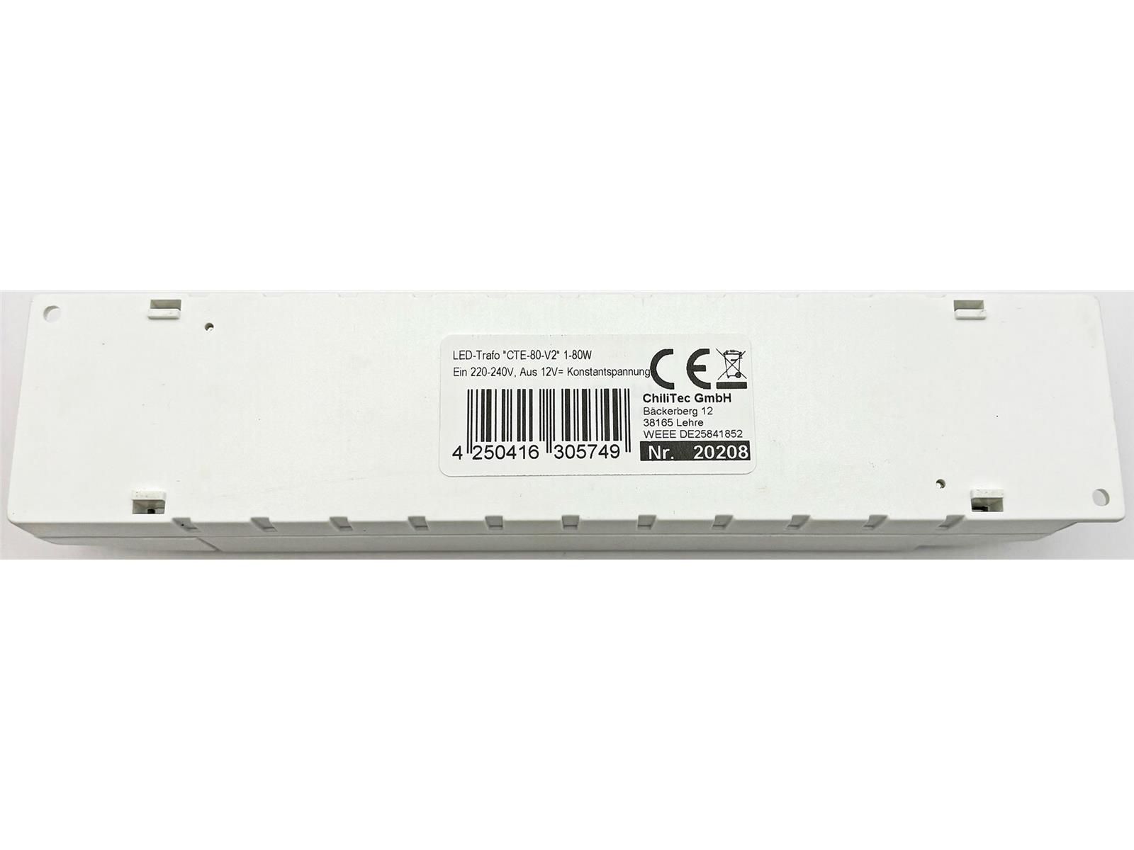 ChiliTec LED-Trafo "CTE-80-V2" 1-80WEin 220-240V, Aus 12V= Konstantspannung