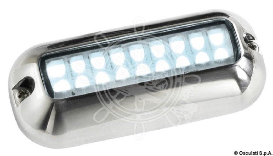LED-Unterwasserleuchte Gehäuse aus hochglanzpoliertem Edelstahl AISI 316 Durch aufeinanderfolgendes Drücken auf den ON-OFF- Schalter können Sie die Farbe der LEDs (weiß grün blau rot) auswählen. LED Abstrahlwinkel 108° LED Anzahl 27 3,6 W 10 30 V K 5700 Unterwasserleuchte weiss 343 Lumen Unterwa