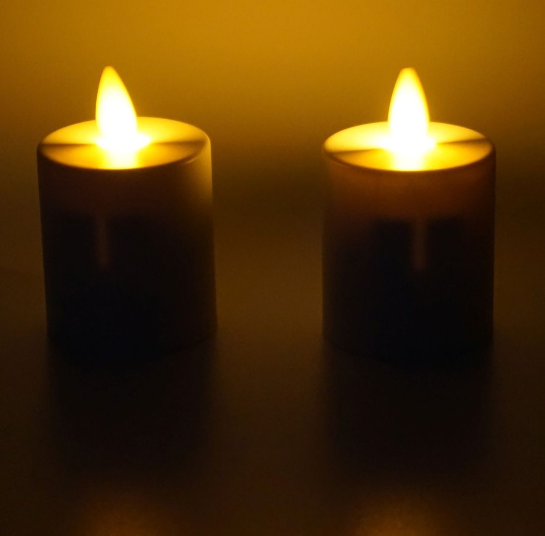 LED Votivkerzen 2 Stück weiß / elfenbein mit Timer und realer Flammenoptik