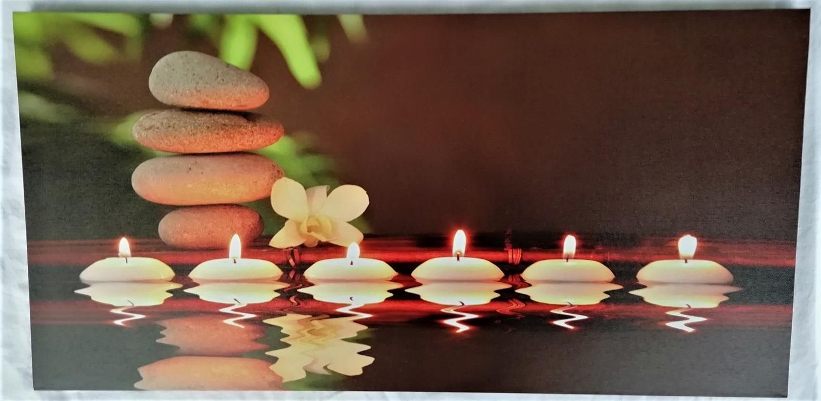 LED Wandbild beleuchtet Schwimmkerzen Feng Shui Steine 30 cm x 60 cm
