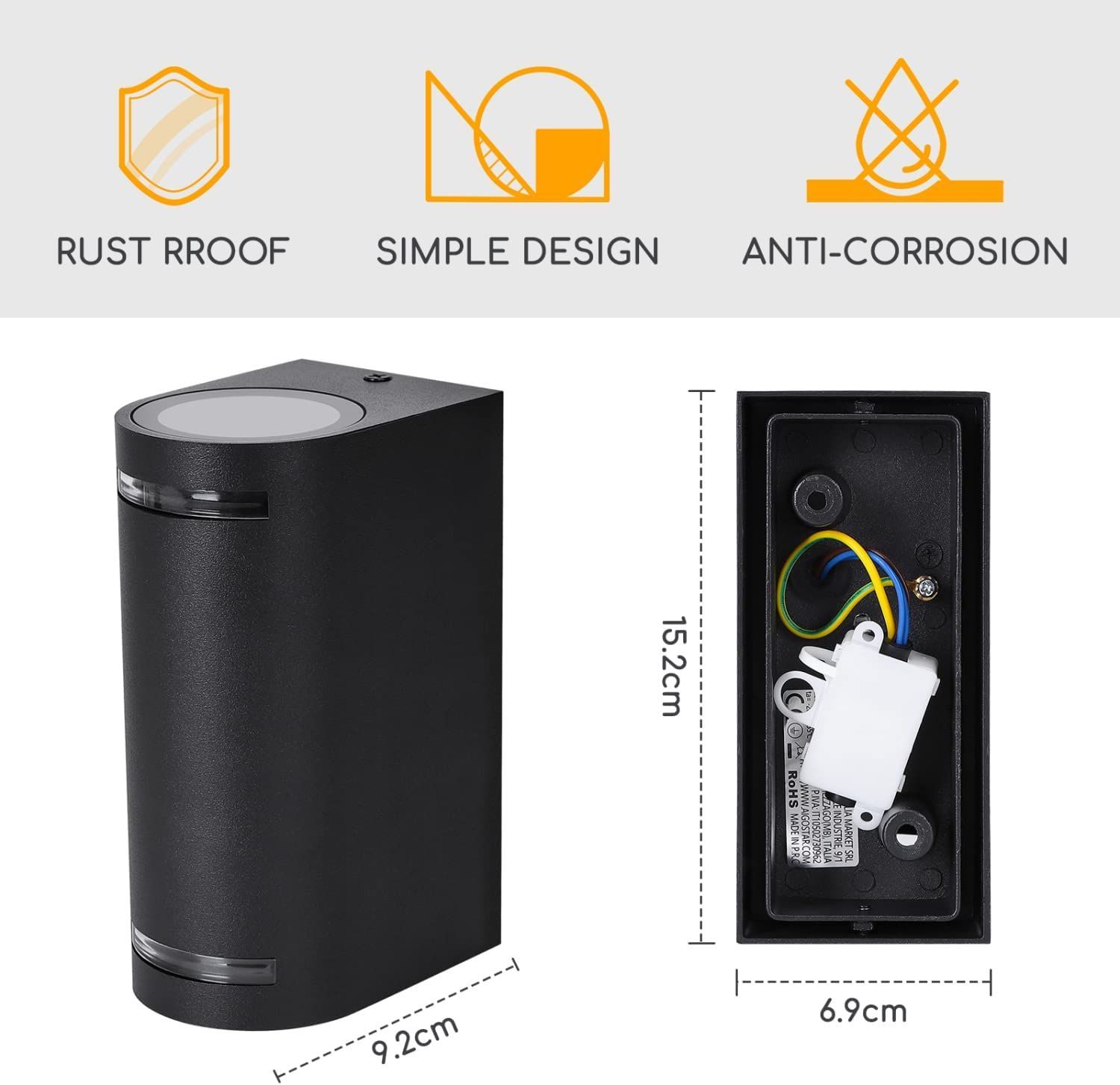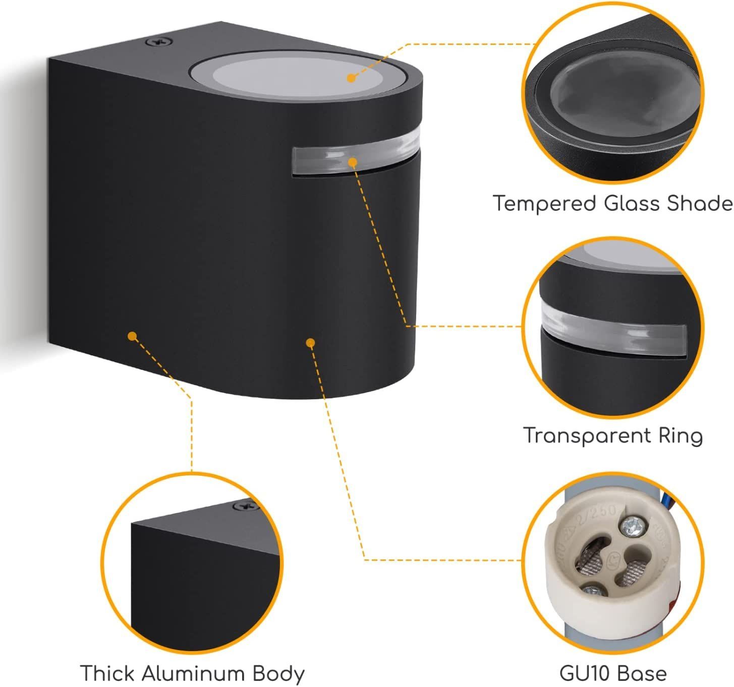 LED Wandleuchte mit GU10 Fassung IP54 in schwarz