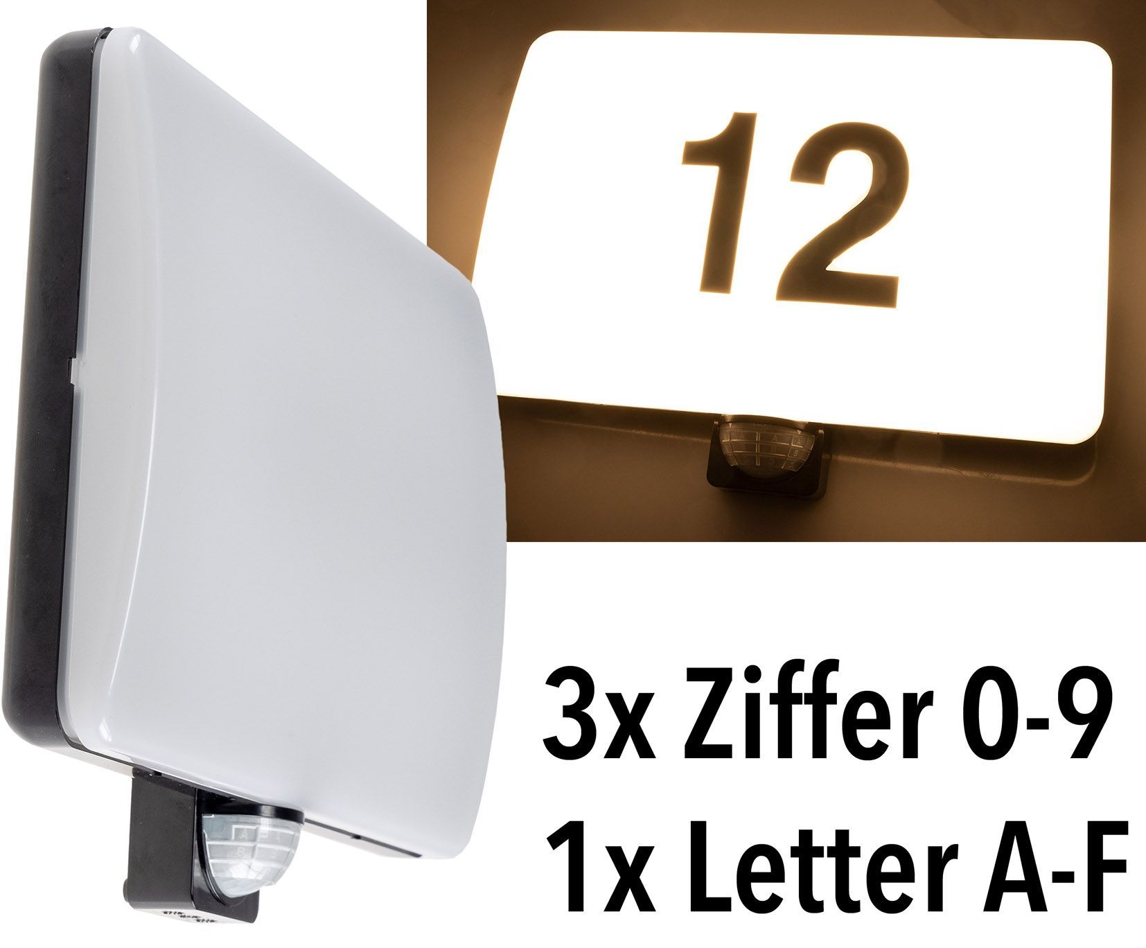 ChiliTec LED Wandleuchte "PADAR" mit PIR-Sensor IP65, 20W, mit Hausnummer & Buchstaben
