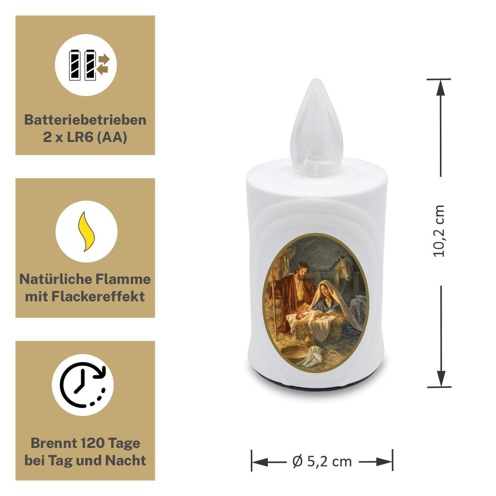 LED Weihnachtskerze Flackereffekt lange Brenndauer weiß mit Weihnachtsmotiv