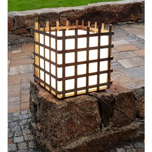 Wenn es dunkel wird, bringt Eldur LED ein Strahlen in Ihren Garten. Der große, weiße Kubus kontrastiert mit dem groben, gitterförmigen Metallkorb und erschafft so interessante Lichteffekte.