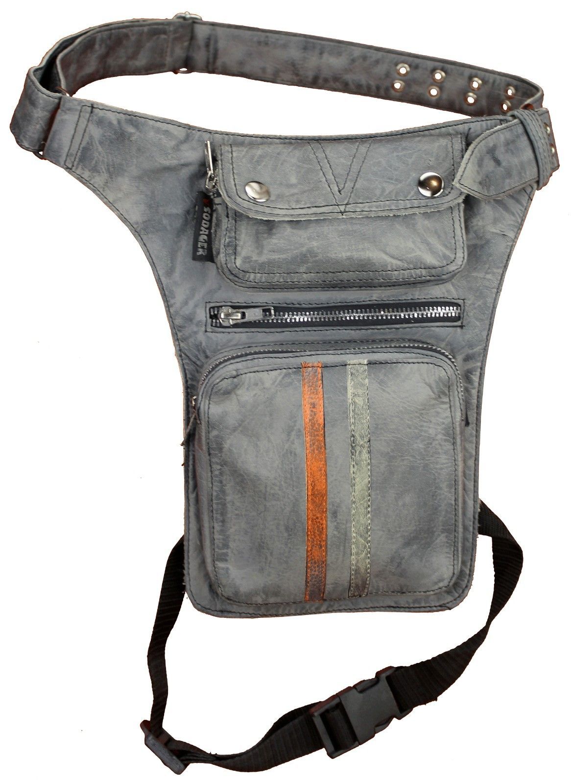 Motorrad Lederbeintasche Echt Leder Grau Wax mit Orange & Beige Streifen : Motorrad & Freizeit Beintasche aus lammleder Rindleder ist ca. 1,1 mm dick 3 große Fächer auf der Vorderseite mit YKK Metall Reißverschlüsse 1 große Reißverschlussfach auf der Rückseite geeignet für die wichtige Dokum