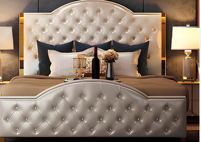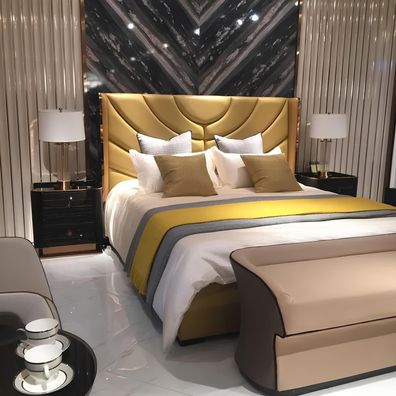 Bett Polster Design Luxus Doppel Hotel Betten Schlaf Zimmer Leder Modern Stoff