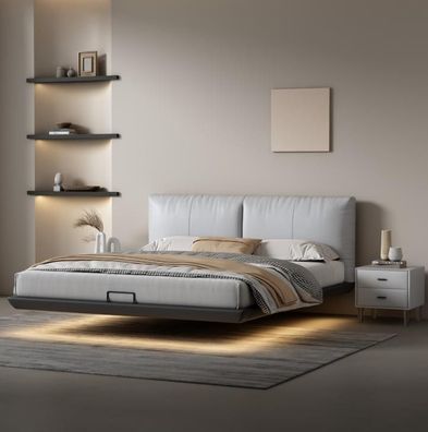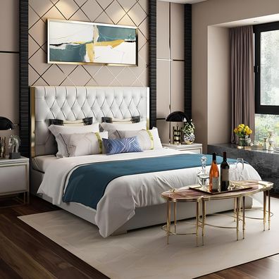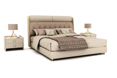 Stilvolles Beiges Schlafzimmer Bett Doppelbett Textilbetten LED-Bett