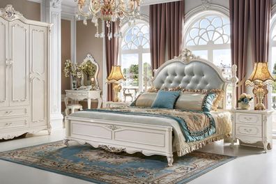Klassisches Schlafzimmer Bett Möbel Holz Leder Betten Barock Rokoko